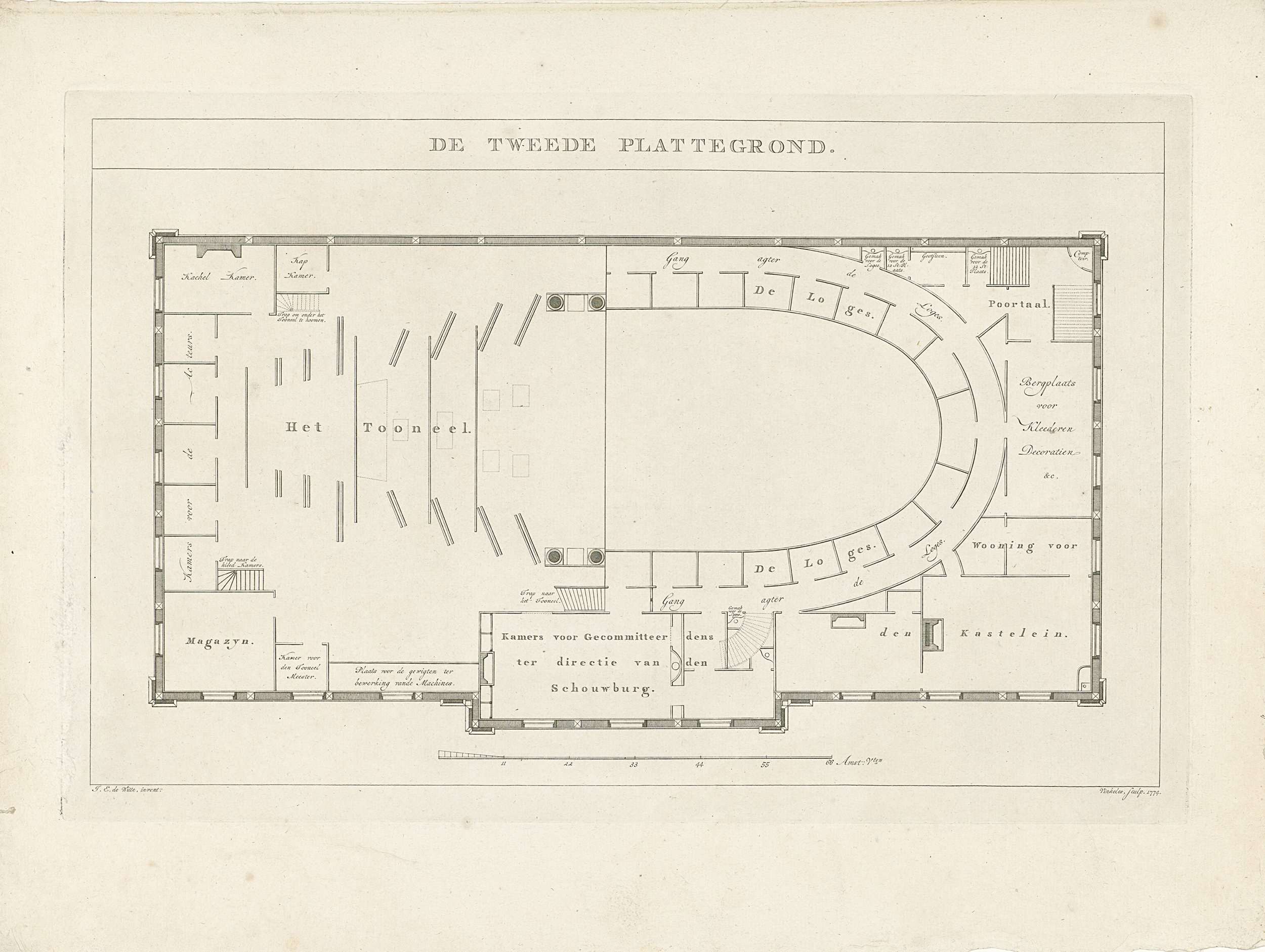 Plattegrond van de schouwburg aan de Keizersgracht t...