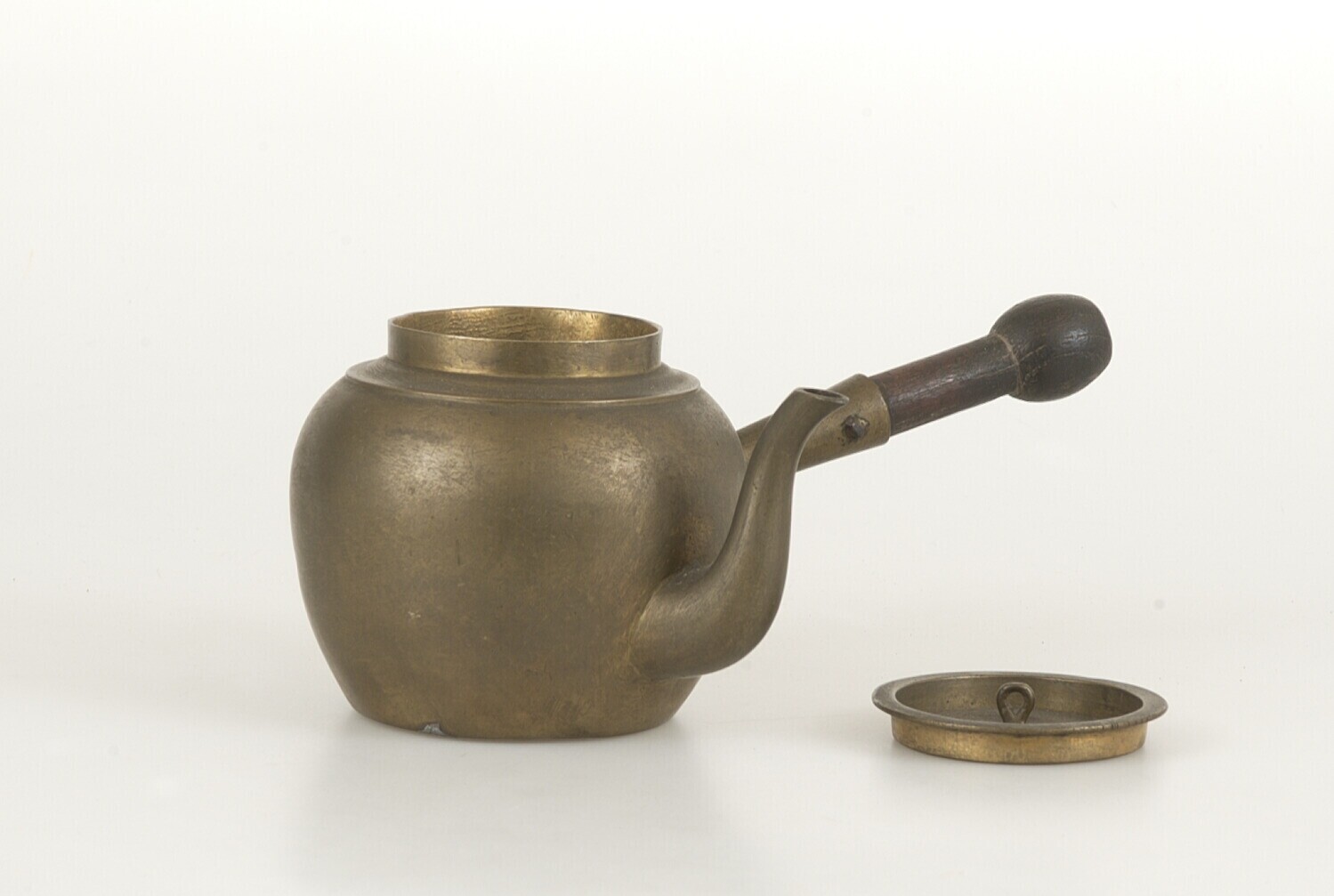Thee- of koffieketeltje met deksel van geelkoper en ...