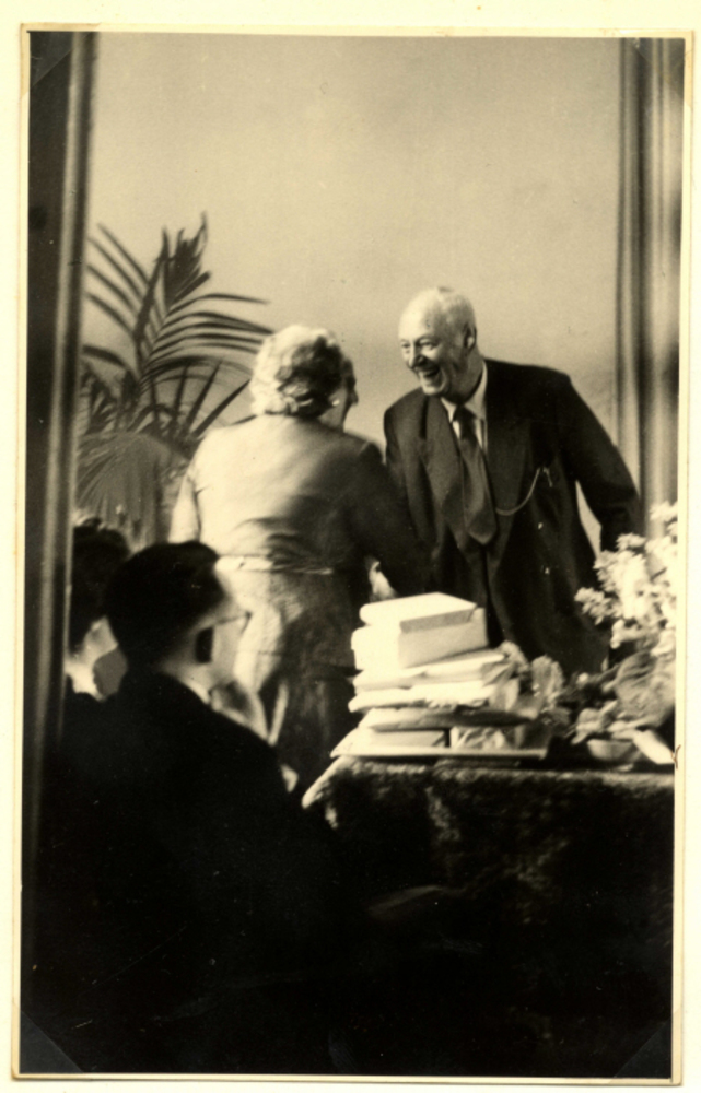 herinneringsbeker van melkglas met initialen W H, 1926