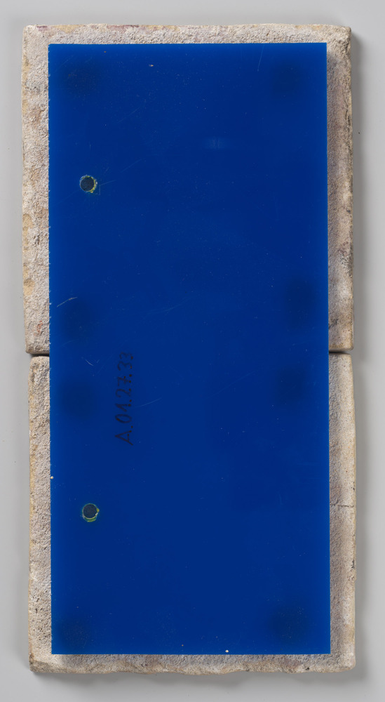 tegelveld van twee tegels van aardewerk met tinglazu...
