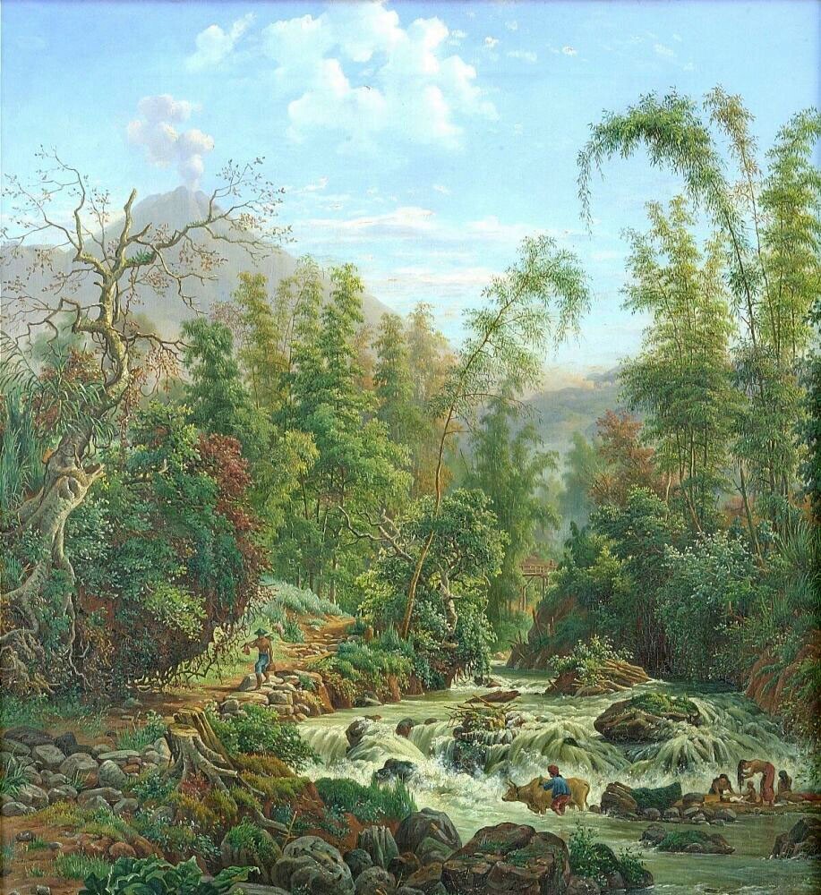 Aquarel by Raden Saleh depicting a man with a sword ...
