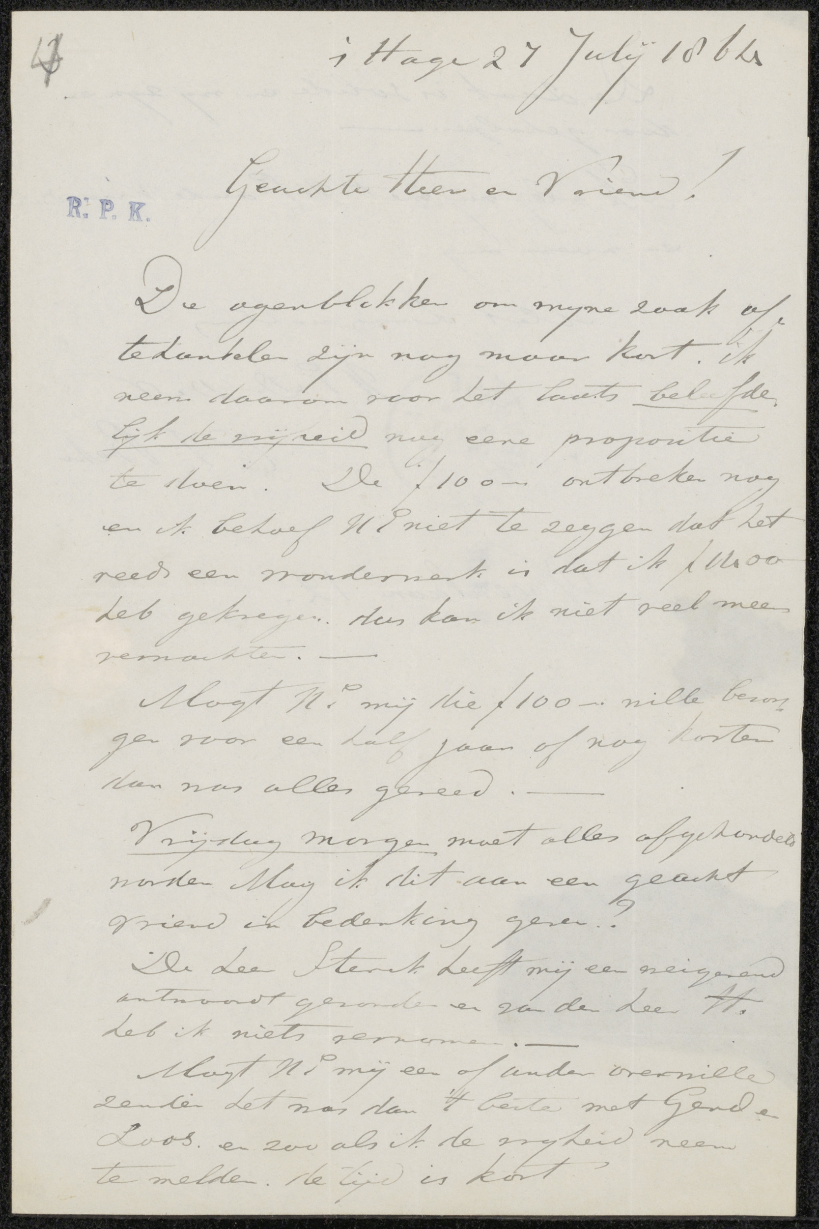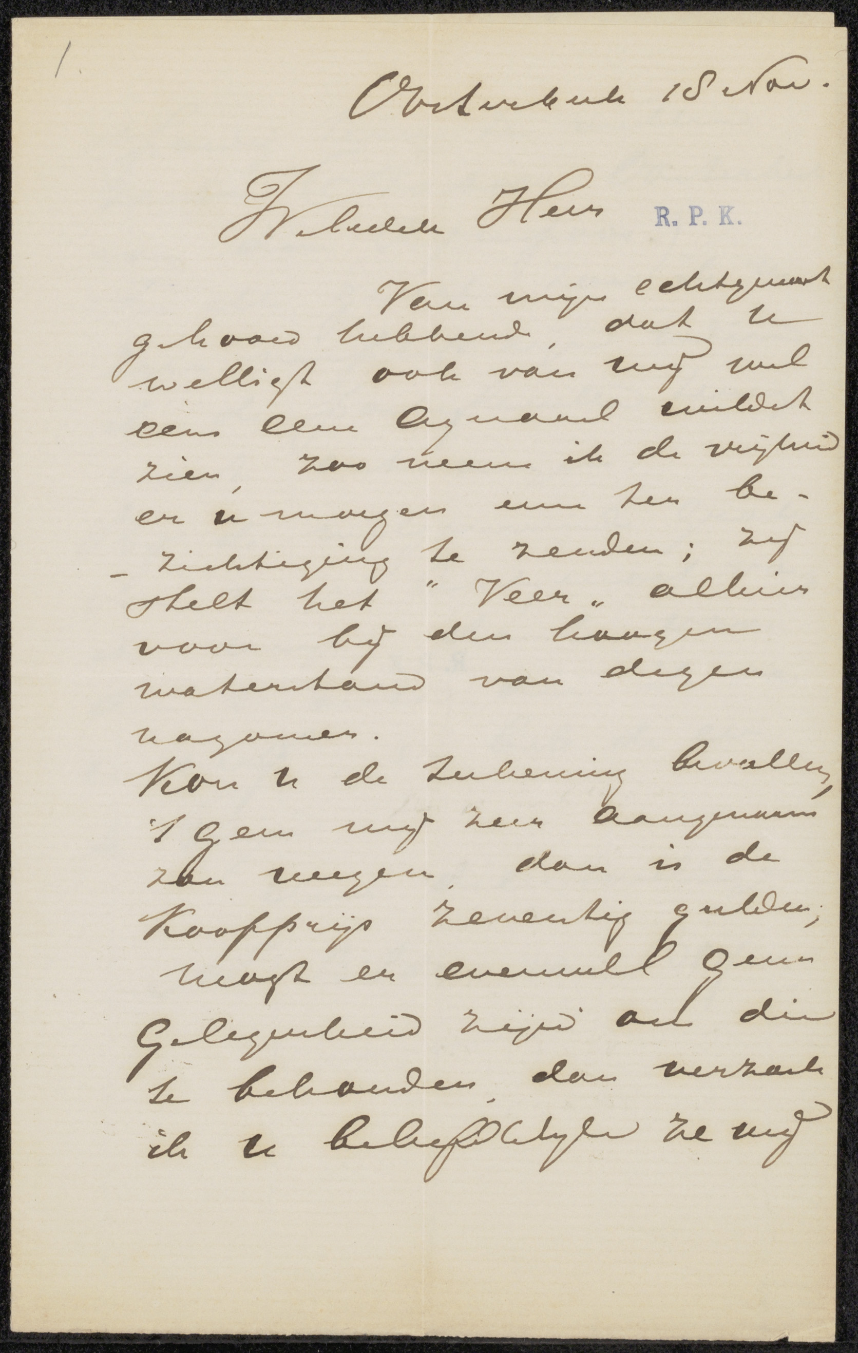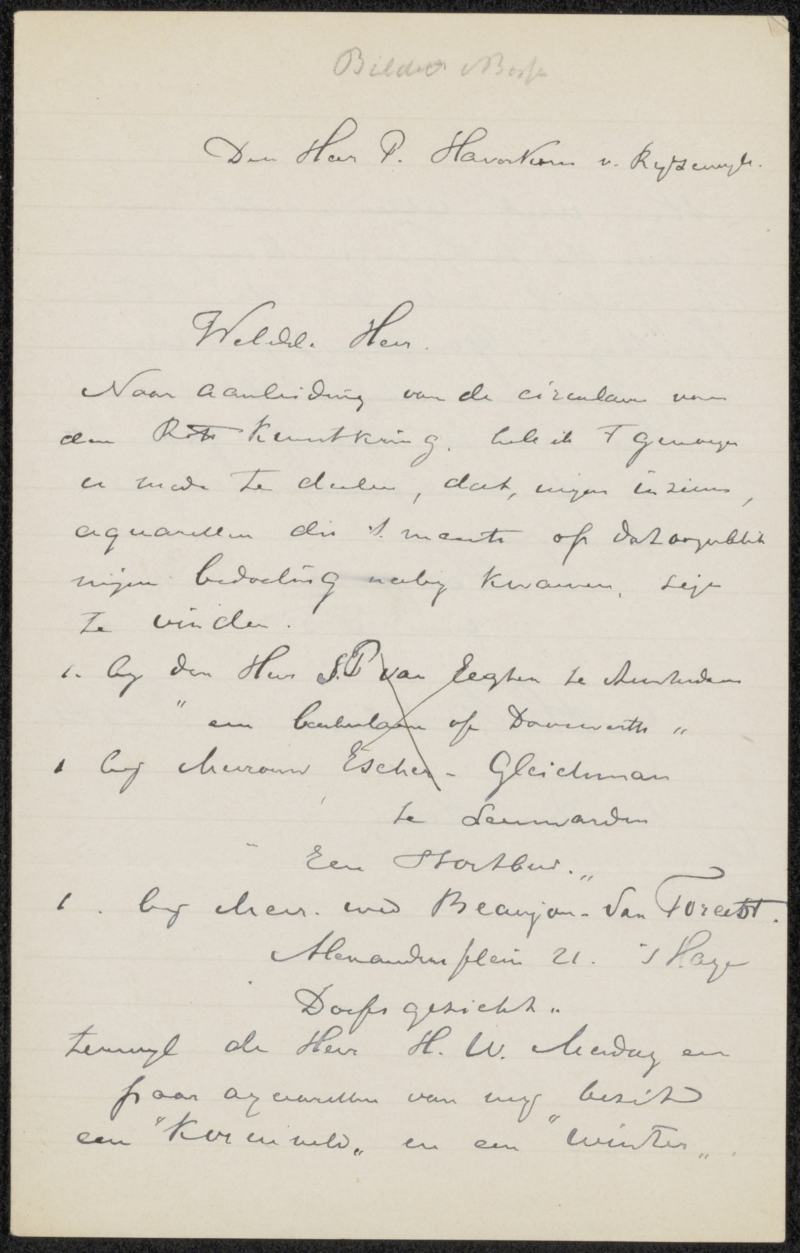 Brief aan Pieter Haverkorn van Rijsewijk