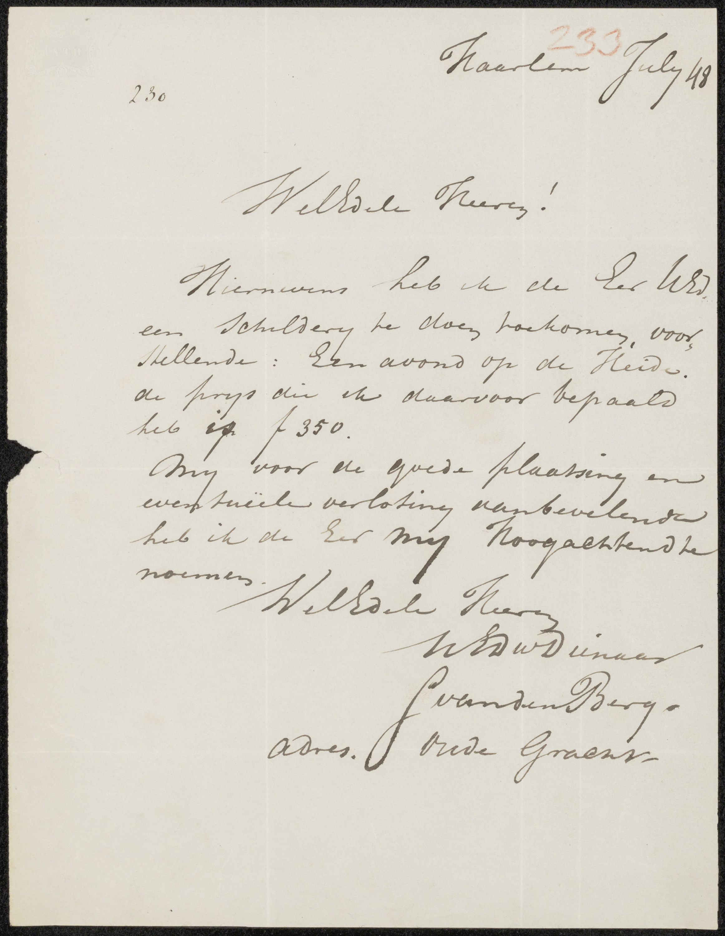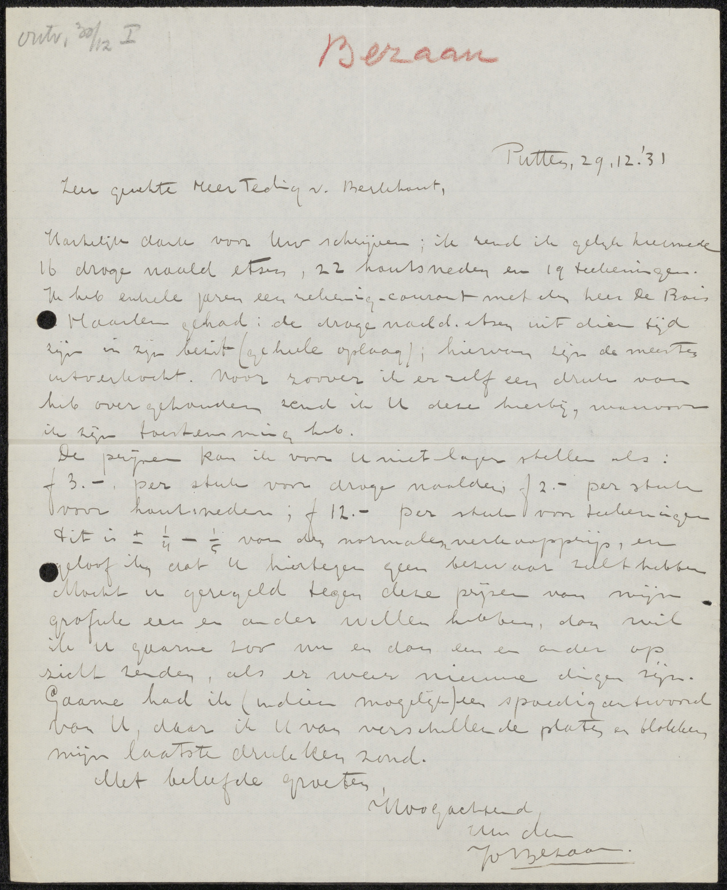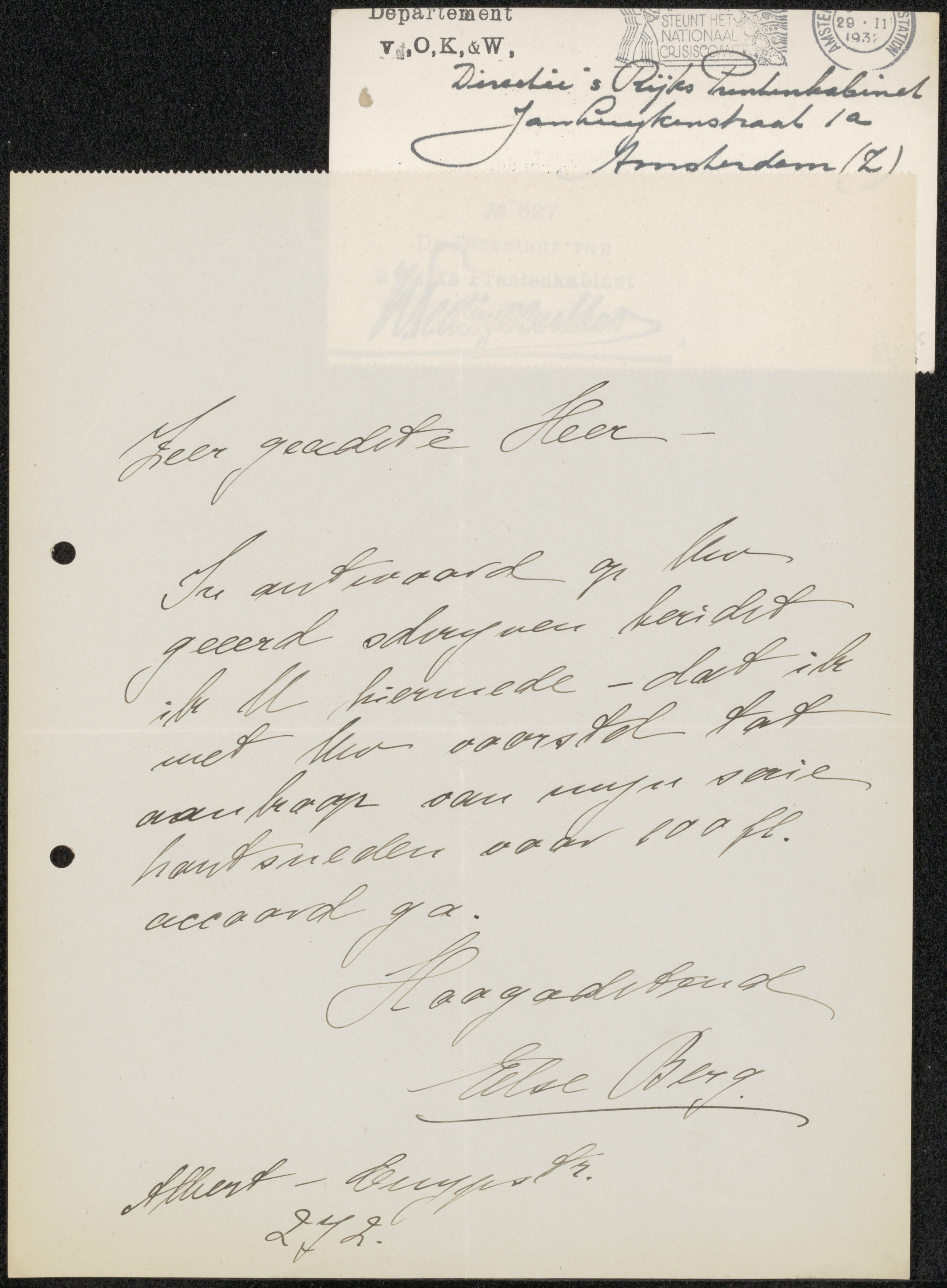 Brief aan jonkheer Hendrik Teding van Berkhout (1879...