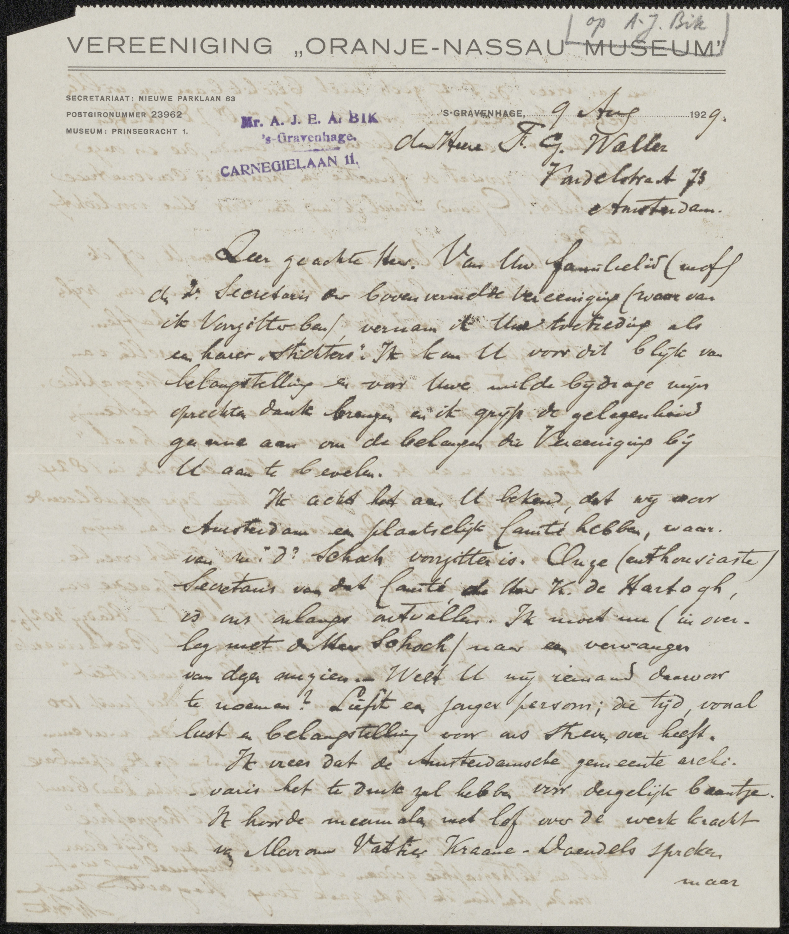 Brief aan François Gérard Waller