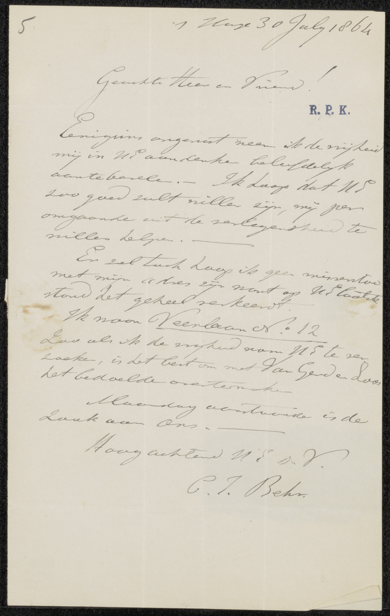 Brief aan Johannes Jacobus Franciscus Wap