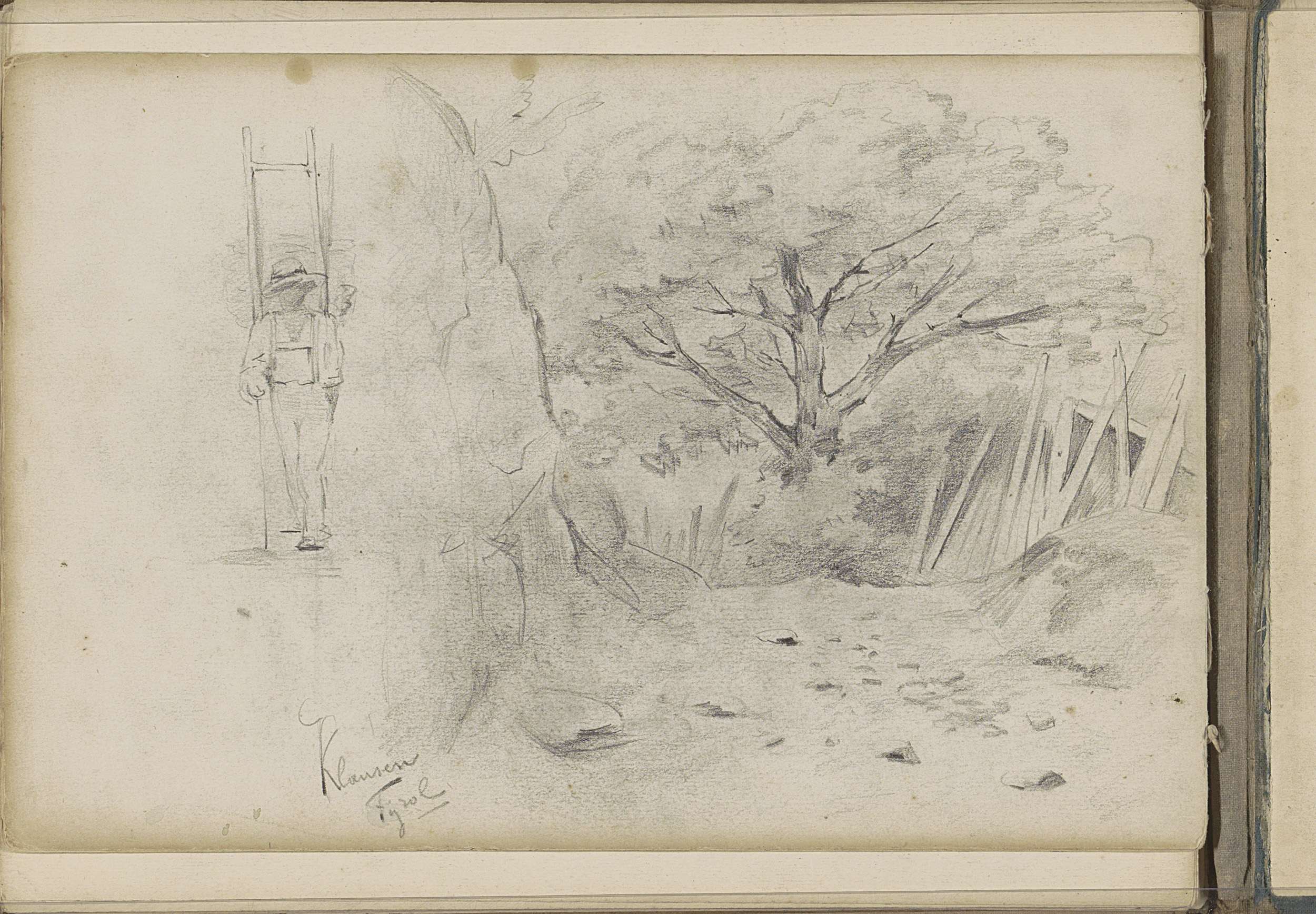 Man in Tiroler dracht en een landschap met een boom