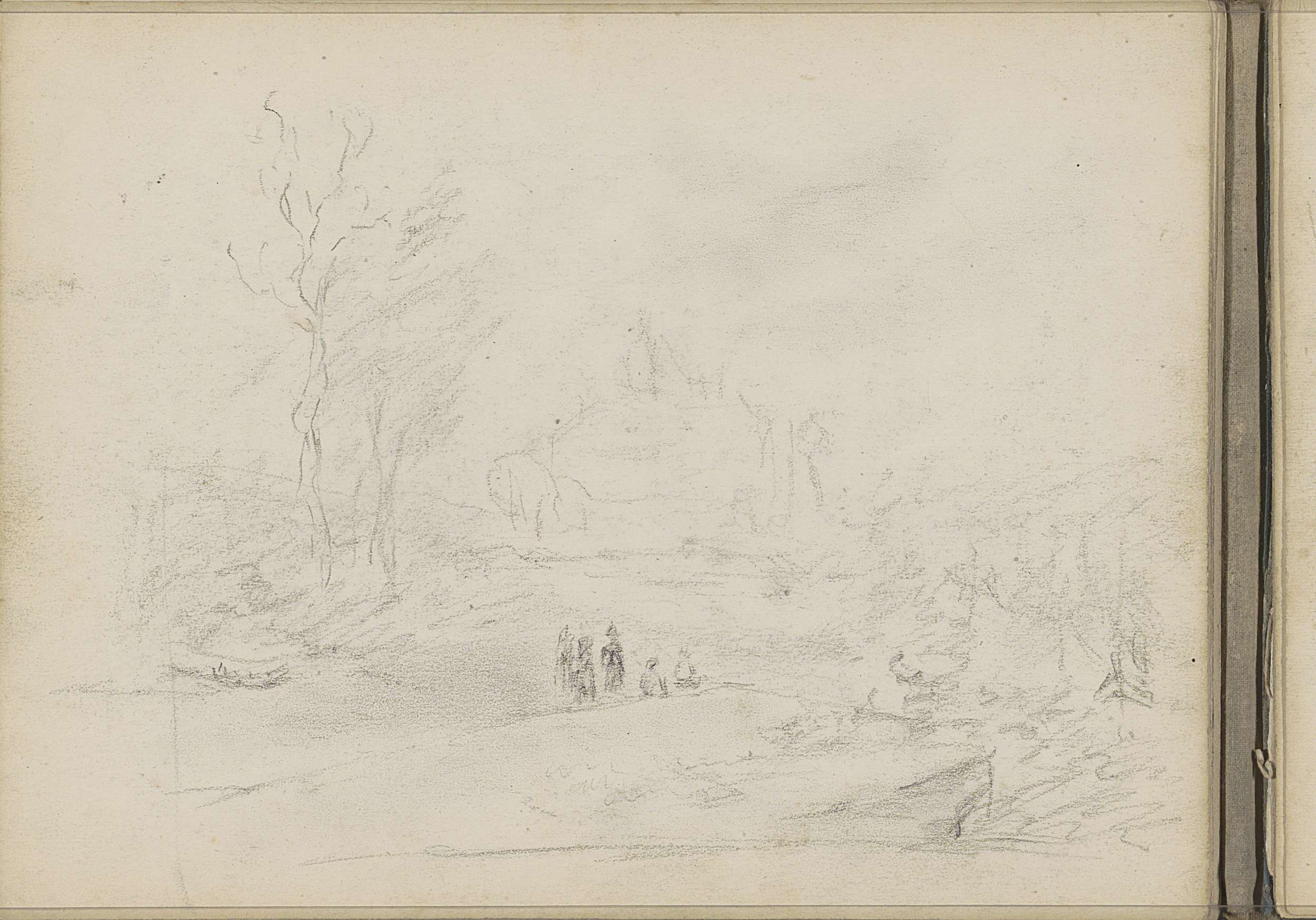 Landschap met figuren op een pad