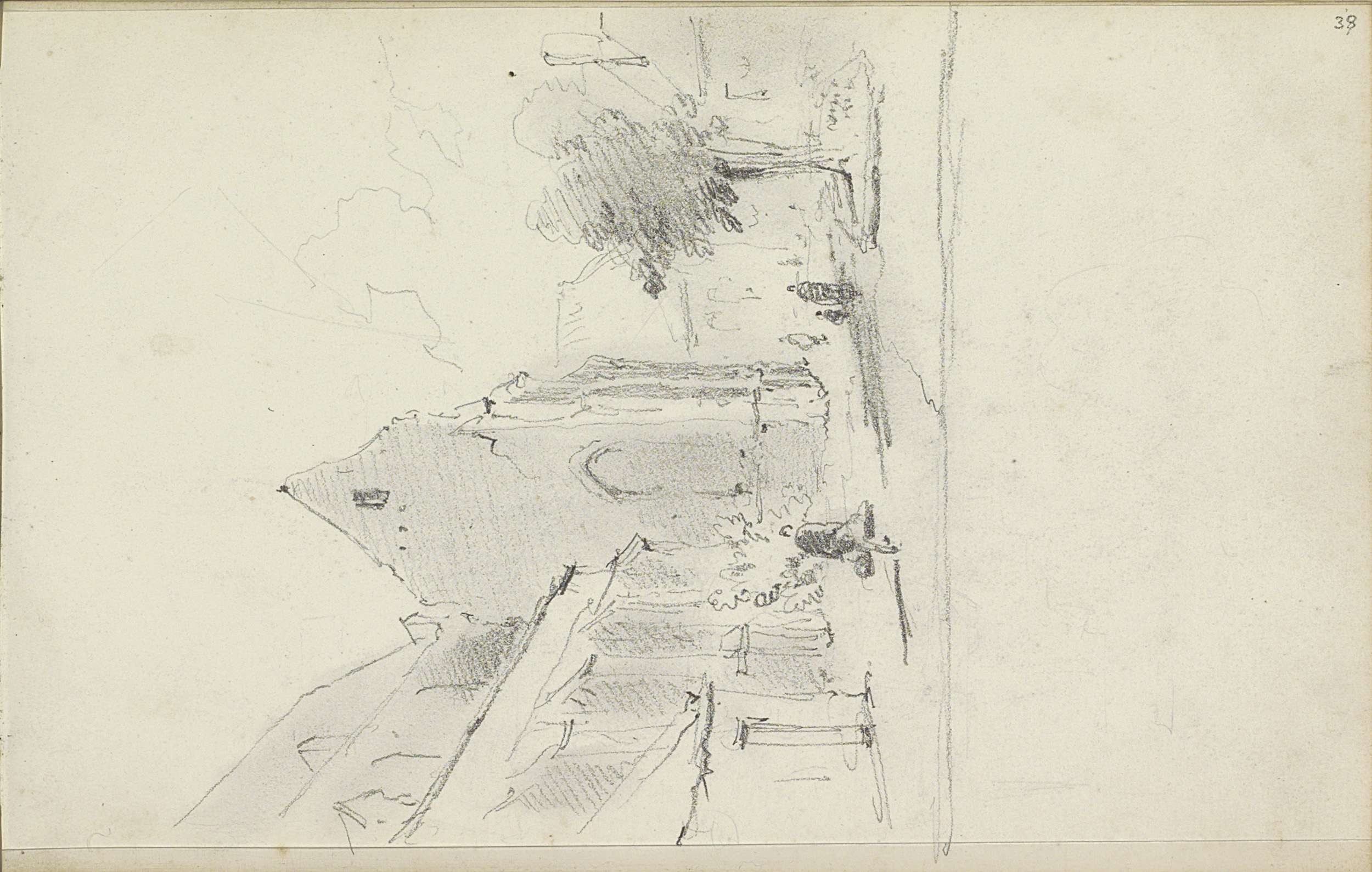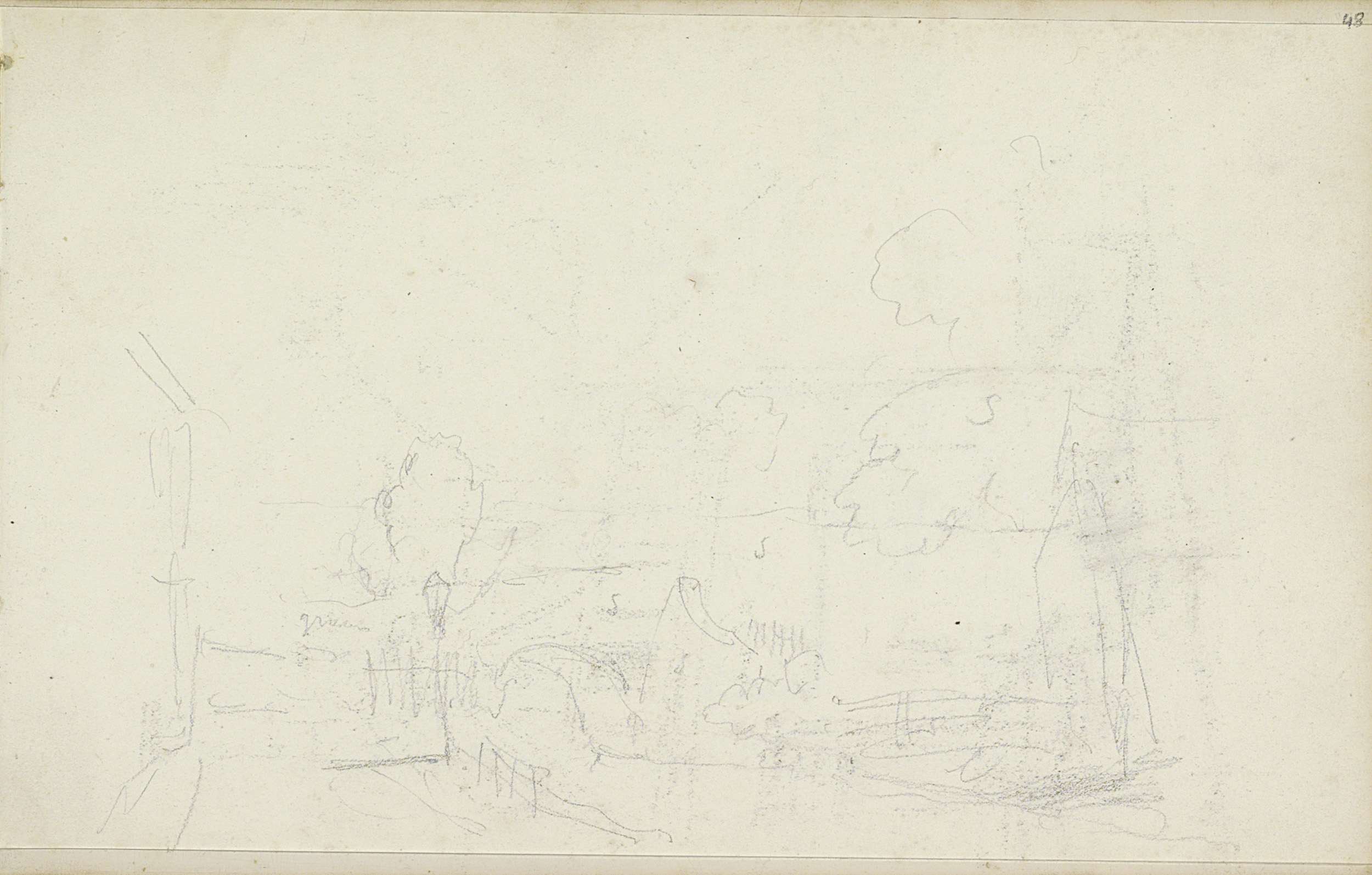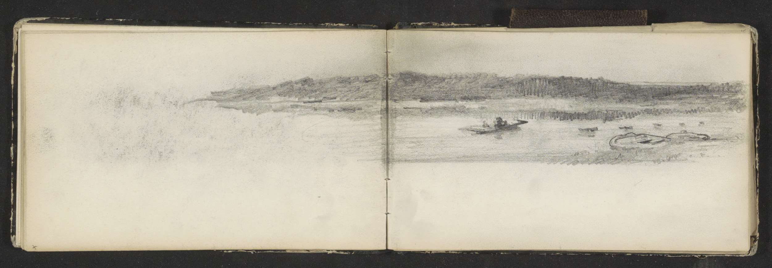 Kromming van een rivier, vermoedelijk de Rijn bij Oo...