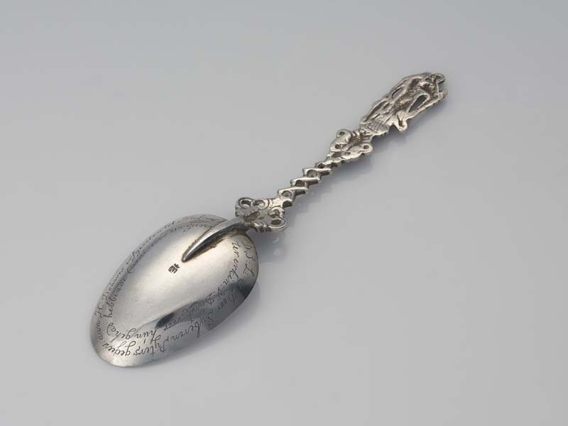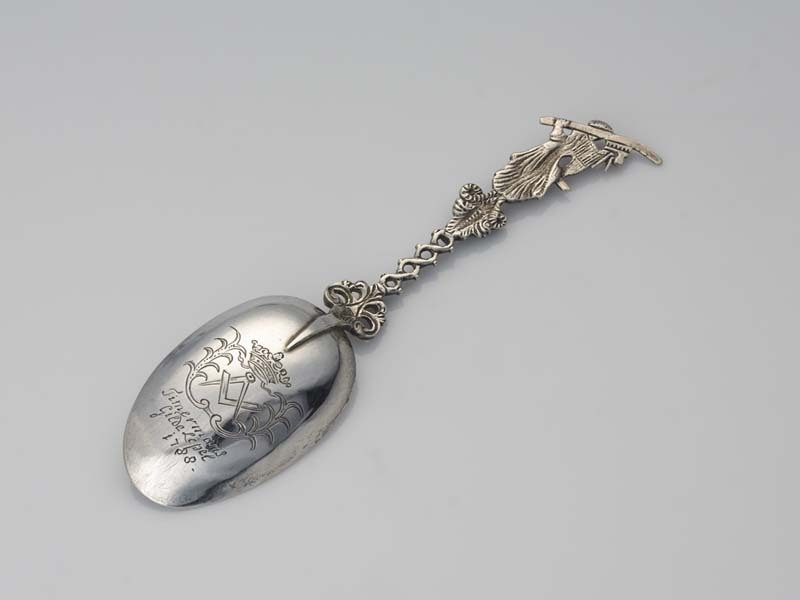 Gedachtenislepel met bekroning van vrouwenfiguur, st...