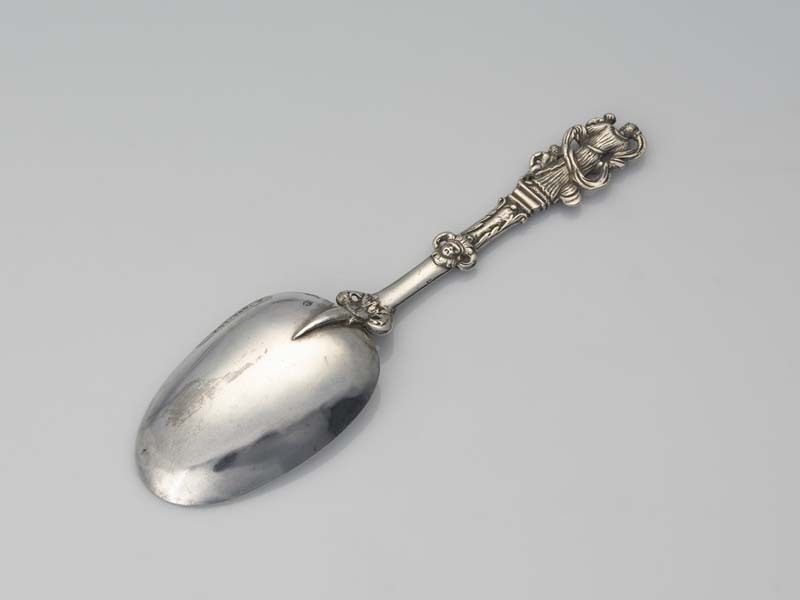 Gedachtenislepel met onderaan symmetrische rankwerk,...