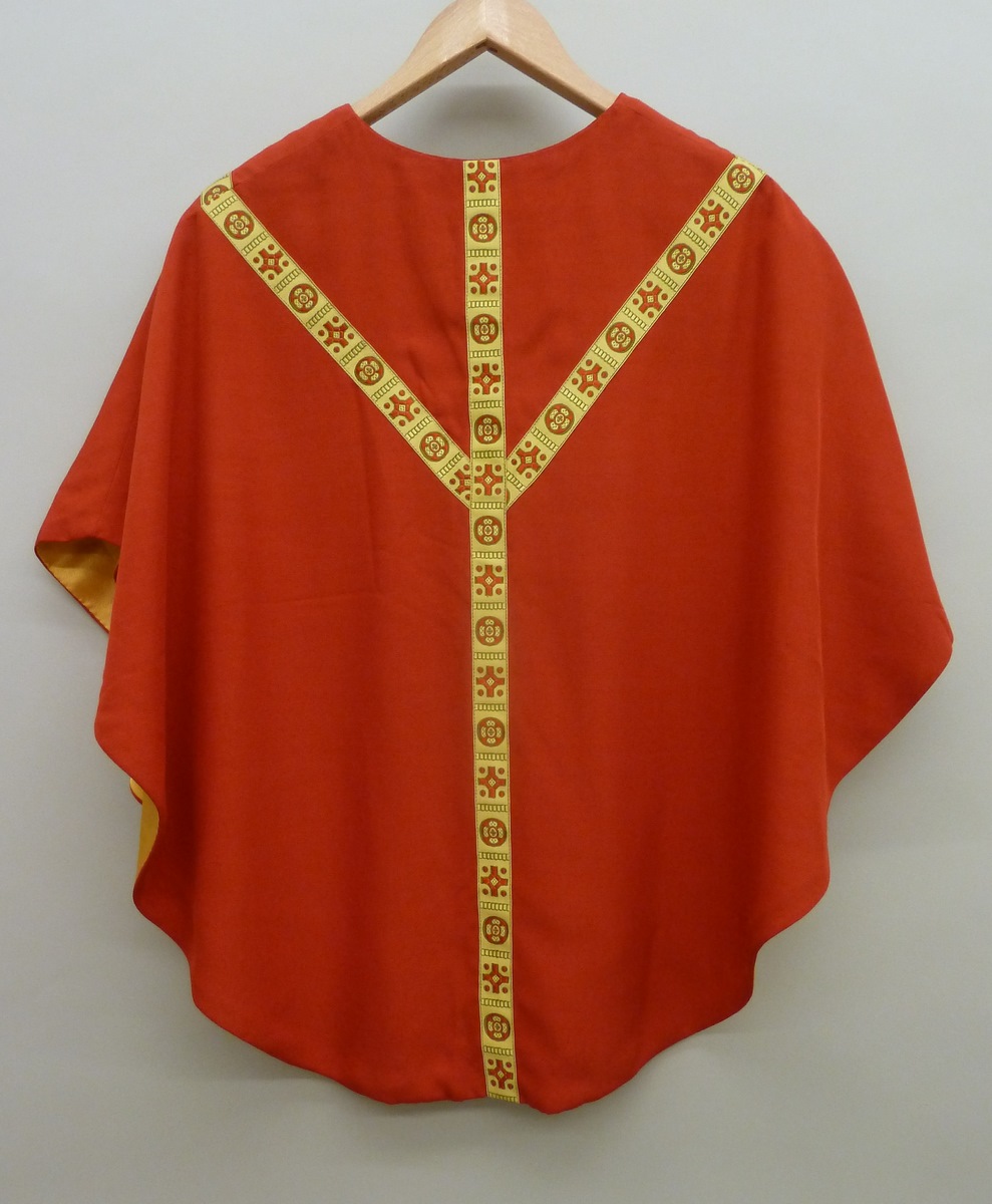 Rood gotisch speelgoedkazuifel met voor en achter ee...