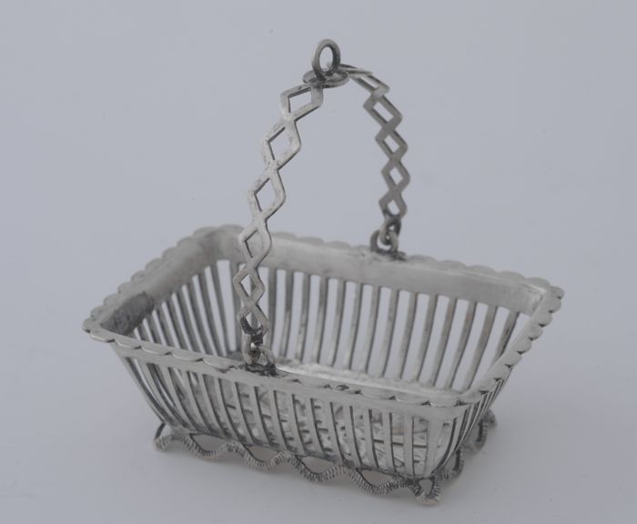 Zilveren miniatuur mand met hengsel