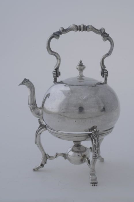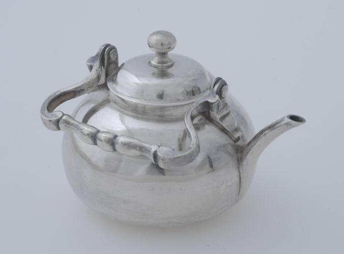 Zilveren miniatuur appèlketel op komfoor