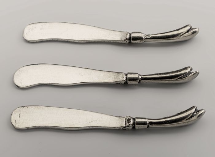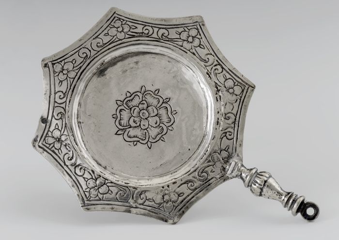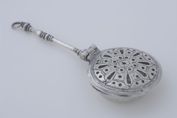 Ronde zilveren miniatuur blaker met steelvormig hand...