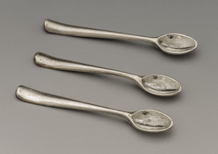 Zilveren miniatuur lepelrek met zes lepels