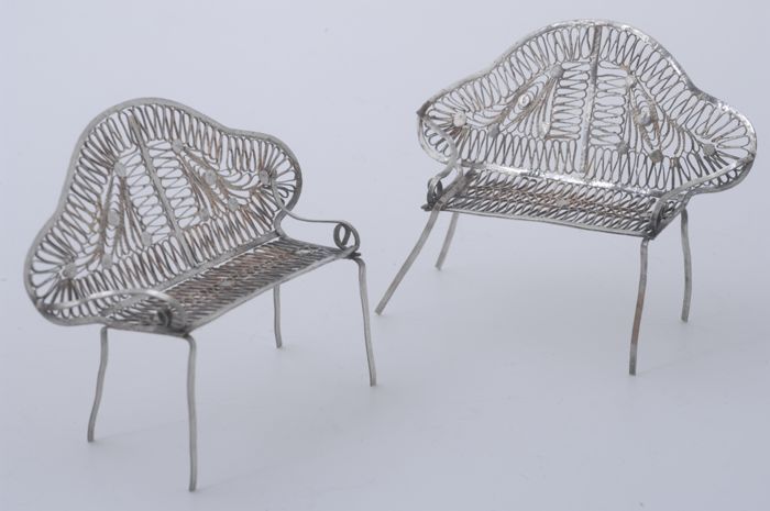 Twee zilveren miniatuur komforen