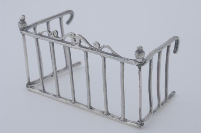 Zilveren miniatuur draagmand