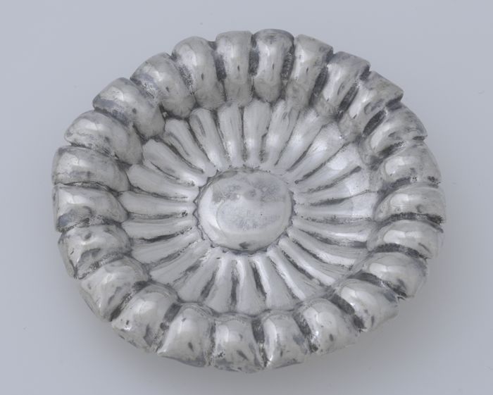 Ronde zilveren miniatuur schotel met gecontourneerde...