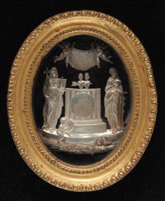 Zilveren ronde miniatuur schotel met engeltjes en bl...