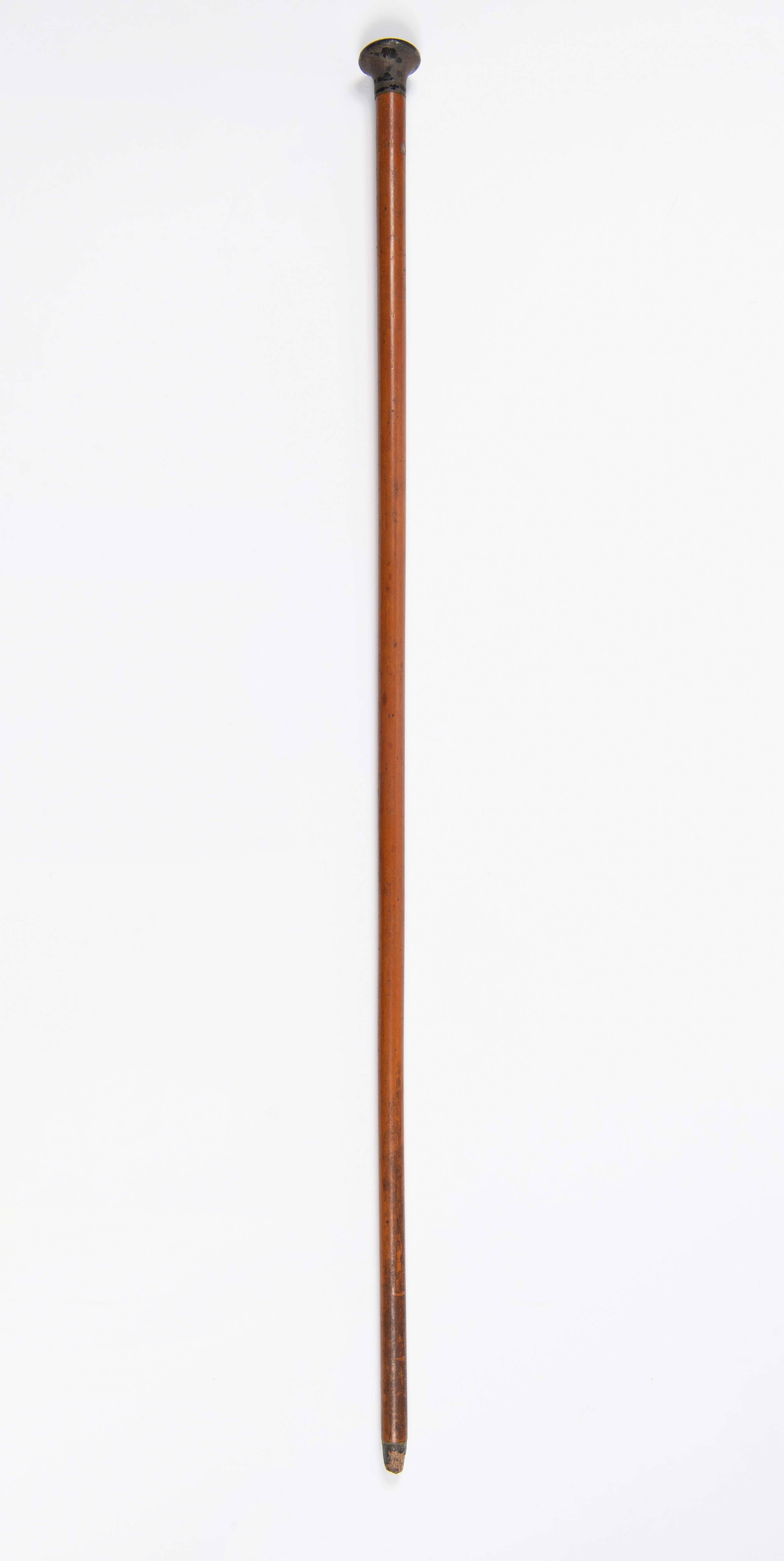 Rotan wandelstok met zilveren knop en messingen punt...