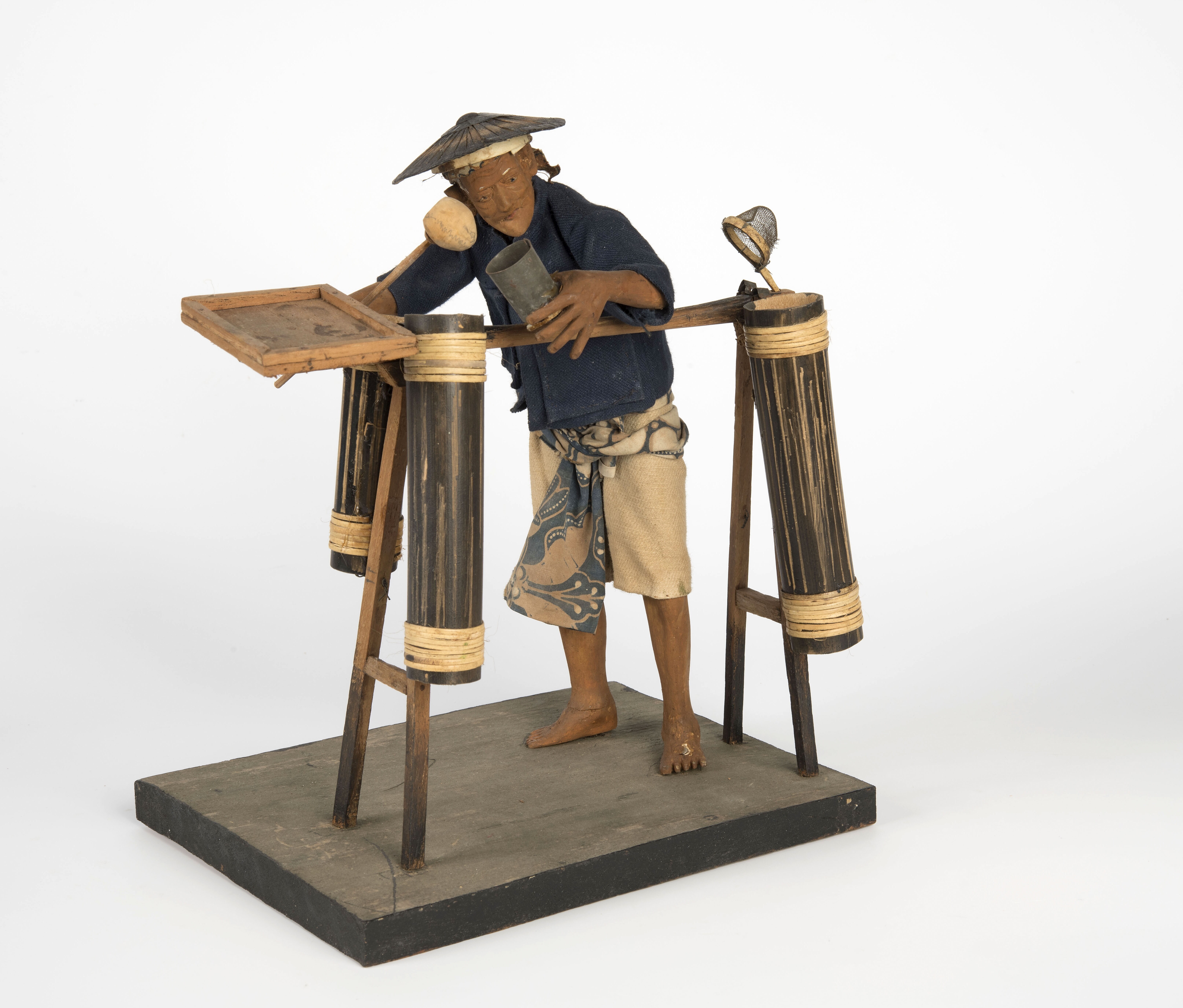 Model van een palmwijnverkoper met attributen