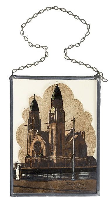 Glas-in-lood raamhanger met afbeelding Koninginnekerk