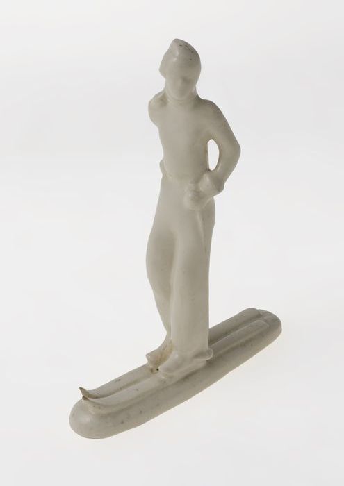 Beeldje van wit keramiek, vrouw op ski's, 'Etha Lemp...