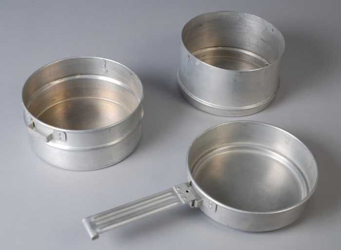 Set aluminium kampeerpannen, bestaand uit drie stape...