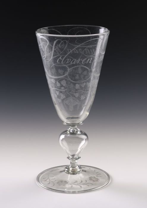 Bokaal met holle knop in stam en grote conische kelk...
