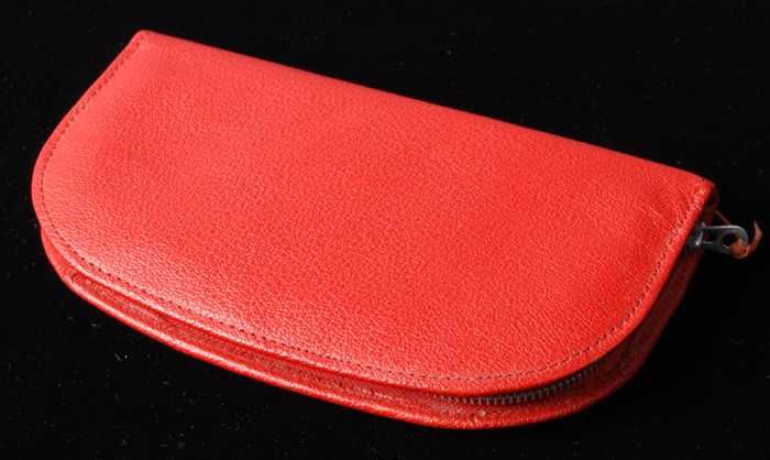 Tiendelige manicureset in een platte rood leren etui...
