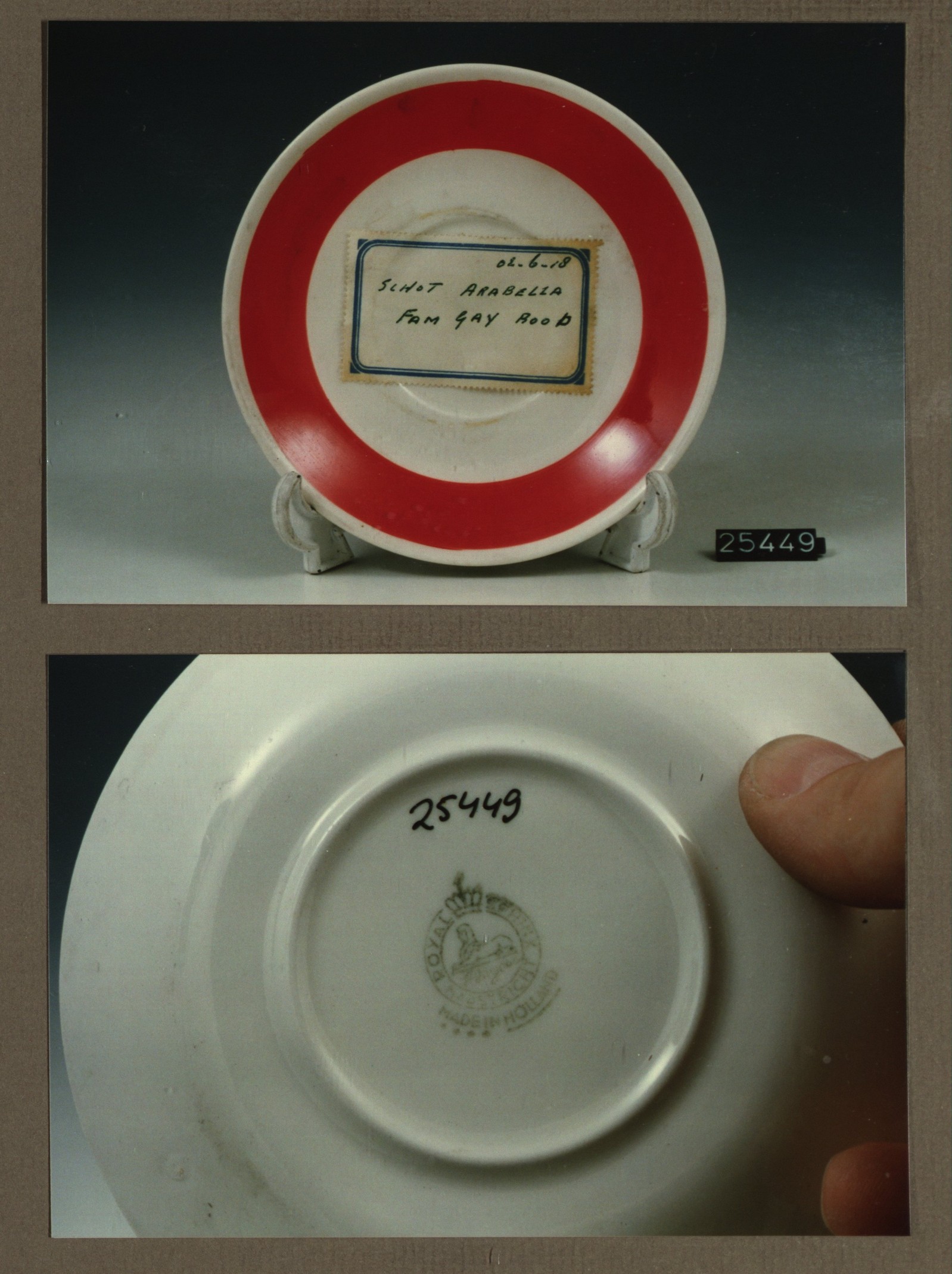 Schotel - plat, model Arabella met decor Stip-randdecor