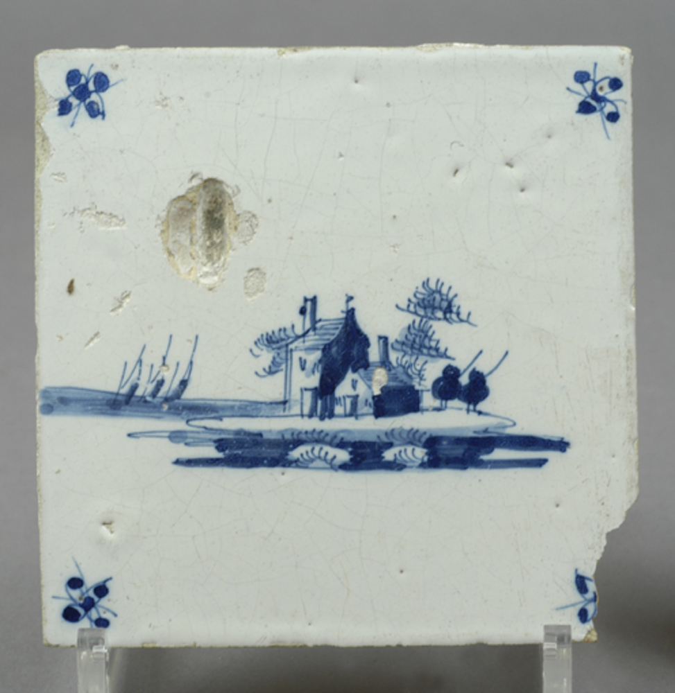 Tegel van keramiek met tinglazuur, voorstellende: El...