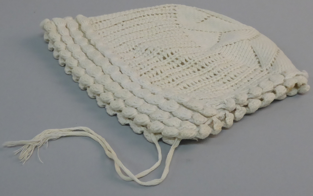 Witte schort van katoen eerste helft van de 20e eeuw.