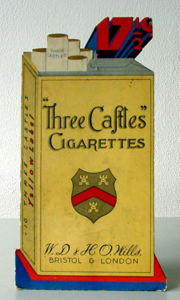 Reclamemateriaal van karton voor Three Castles Cigar...