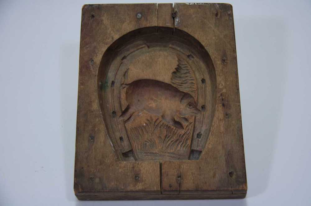 Suikerwerkplank van hout met 5 figuren: een hond, ze...