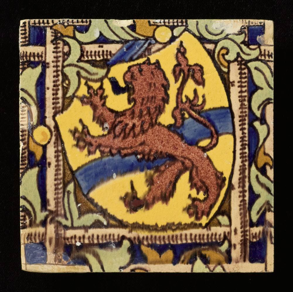 Tegel van keramiek, tinglazuur, voorstellende Spaans...