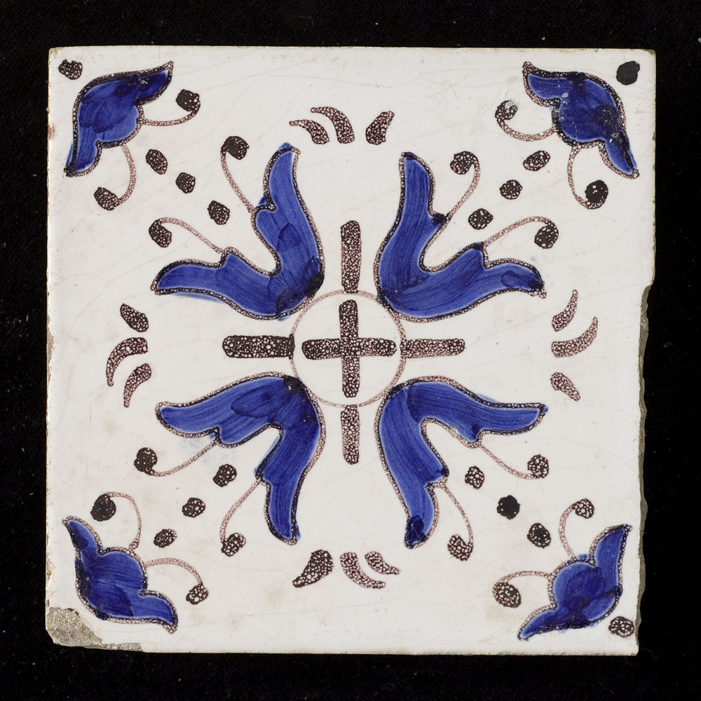 Tegel in tinglazuur, voorstellende plantmotief, verv...