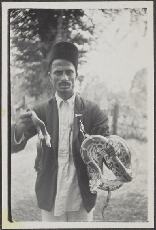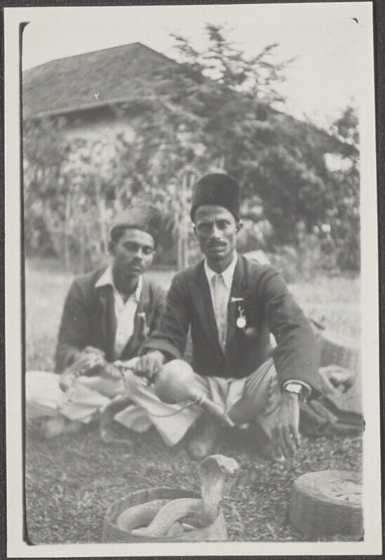 Toeschouwers bij een voorstelling van slangenbezweer...