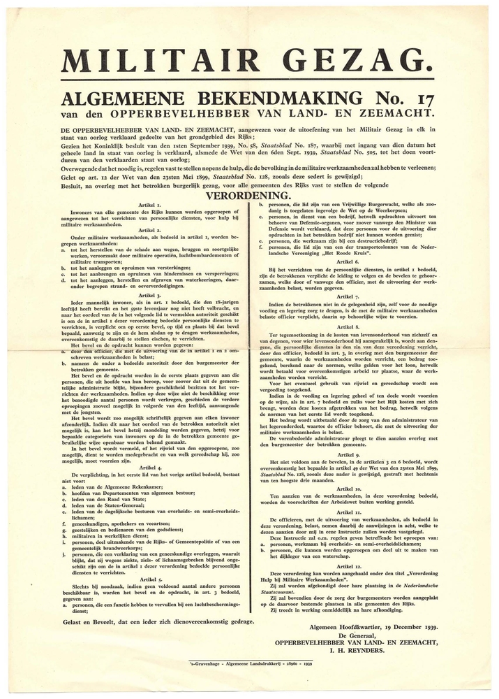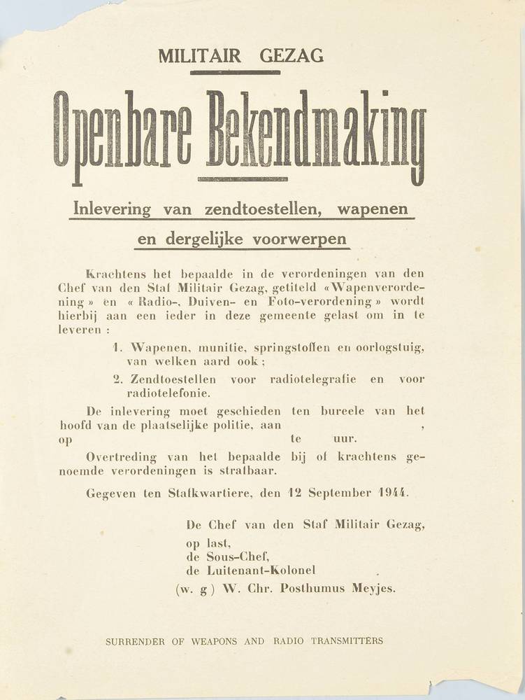 Bekendmaking - Bekanntmachung van Generaal Christian...