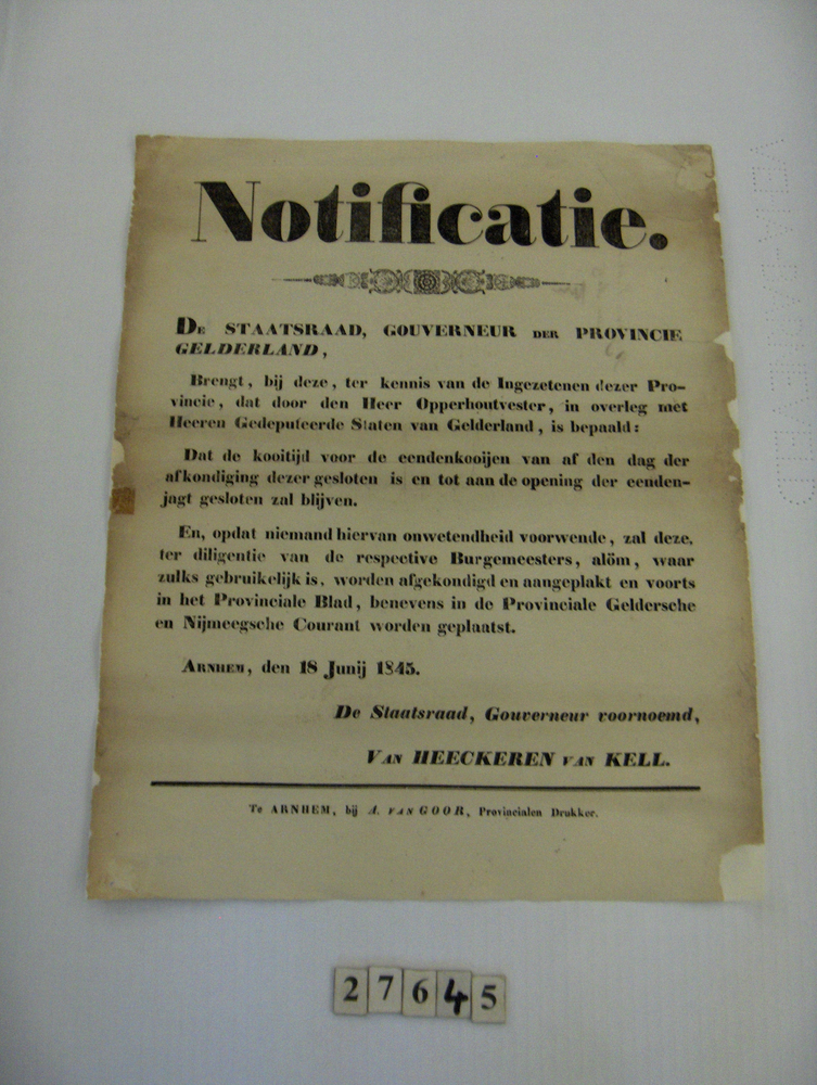 Notificatie van de Staatsraad , Goeverneur en Provin...