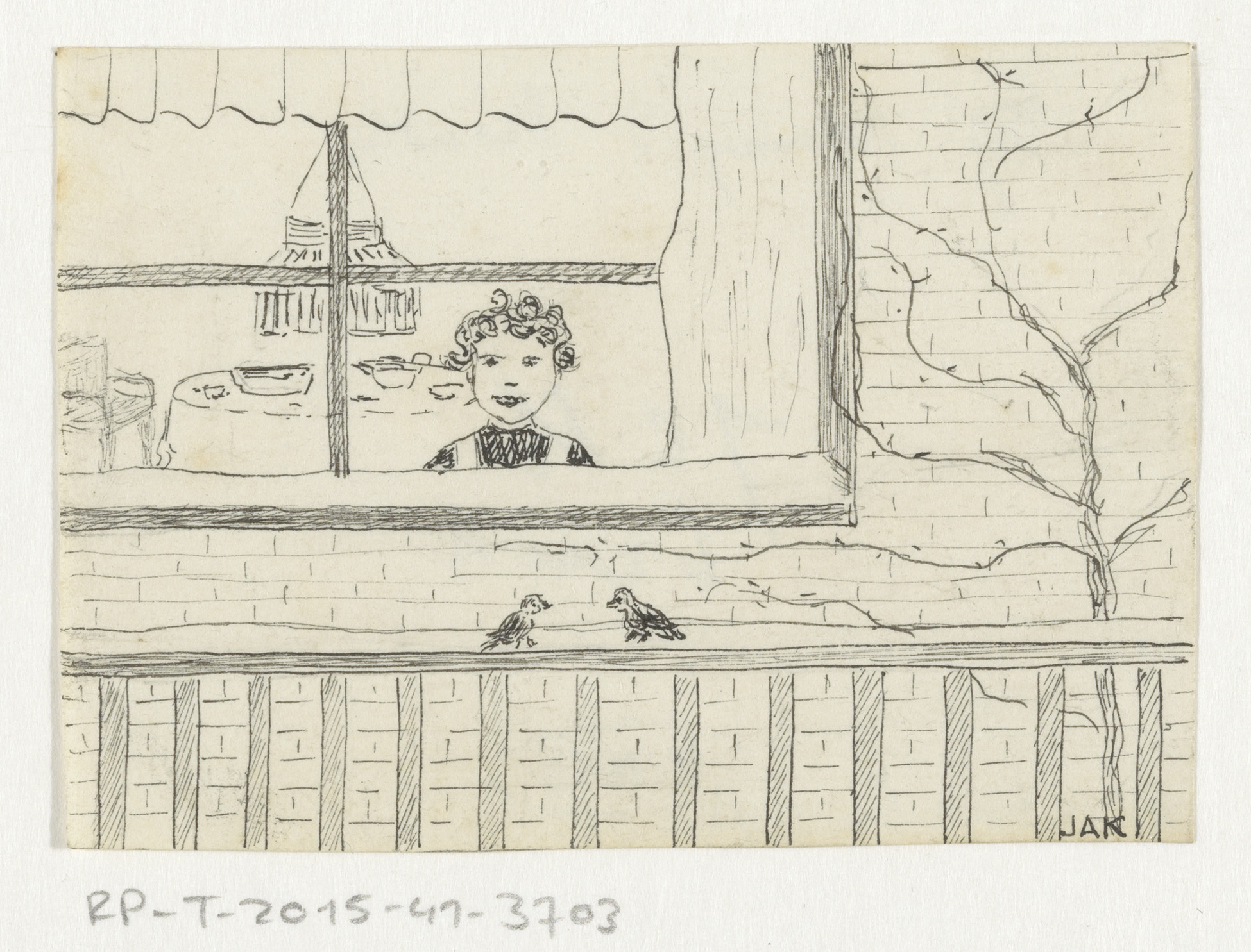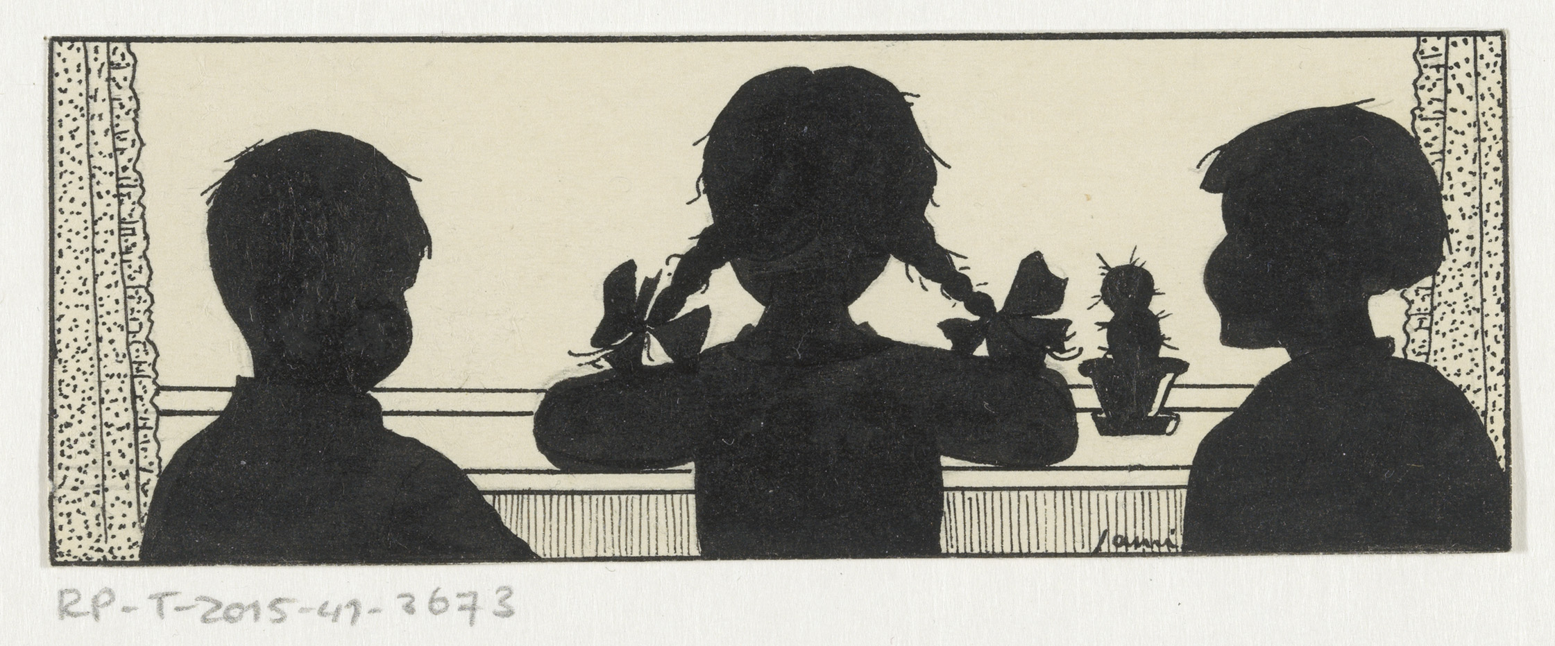 Drie kinderen bij een raam