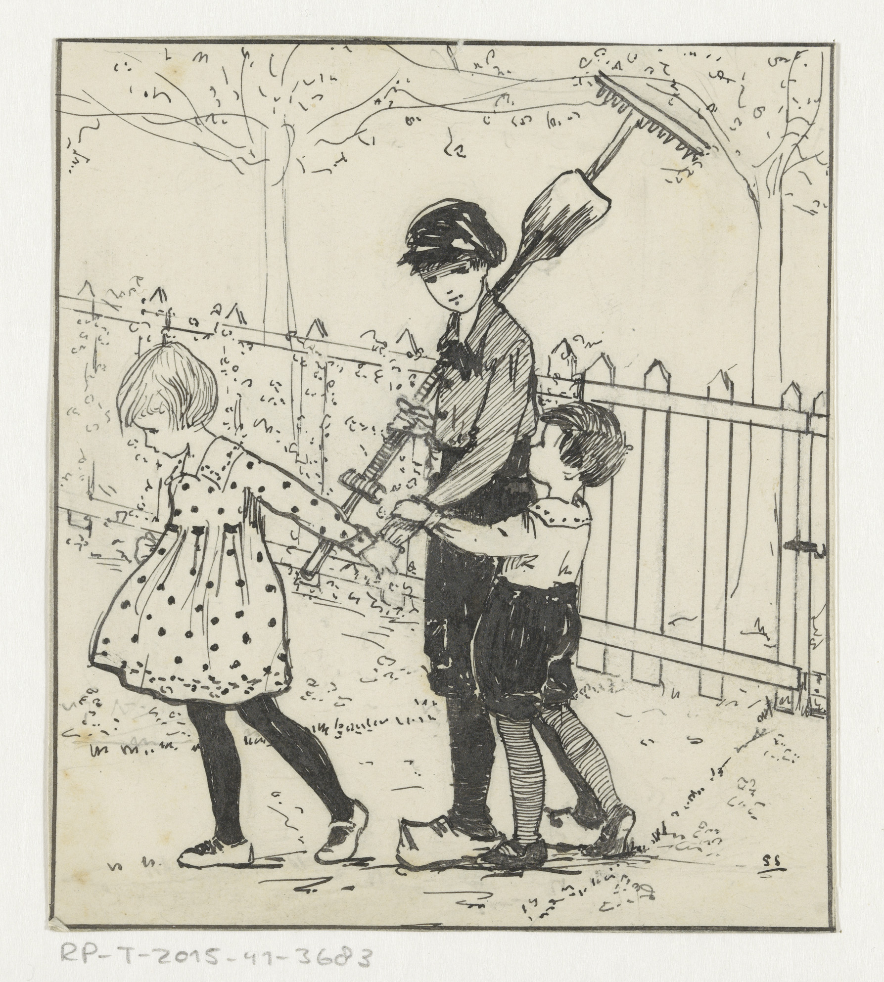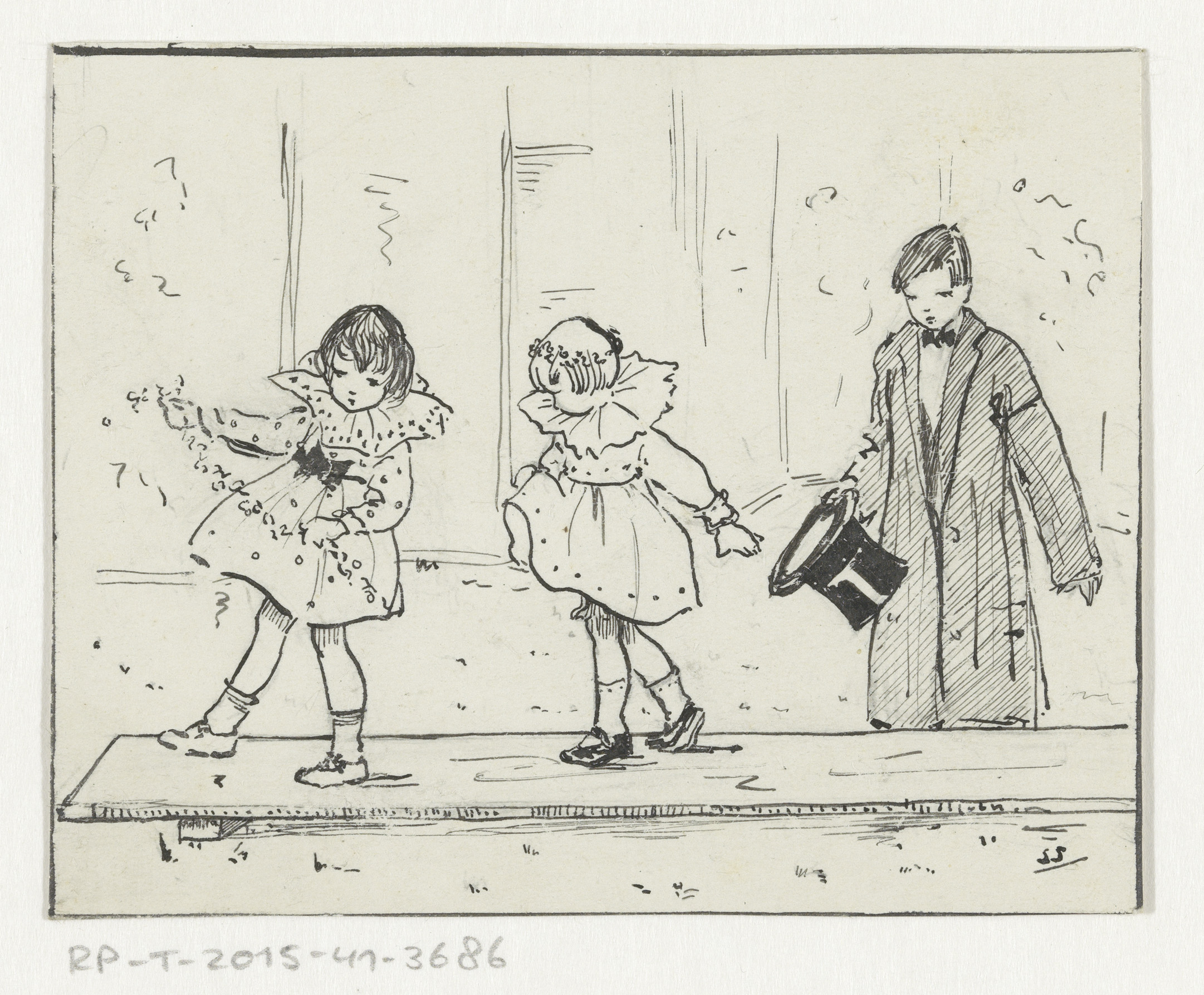 Meisjes en jongen met hoge hoed