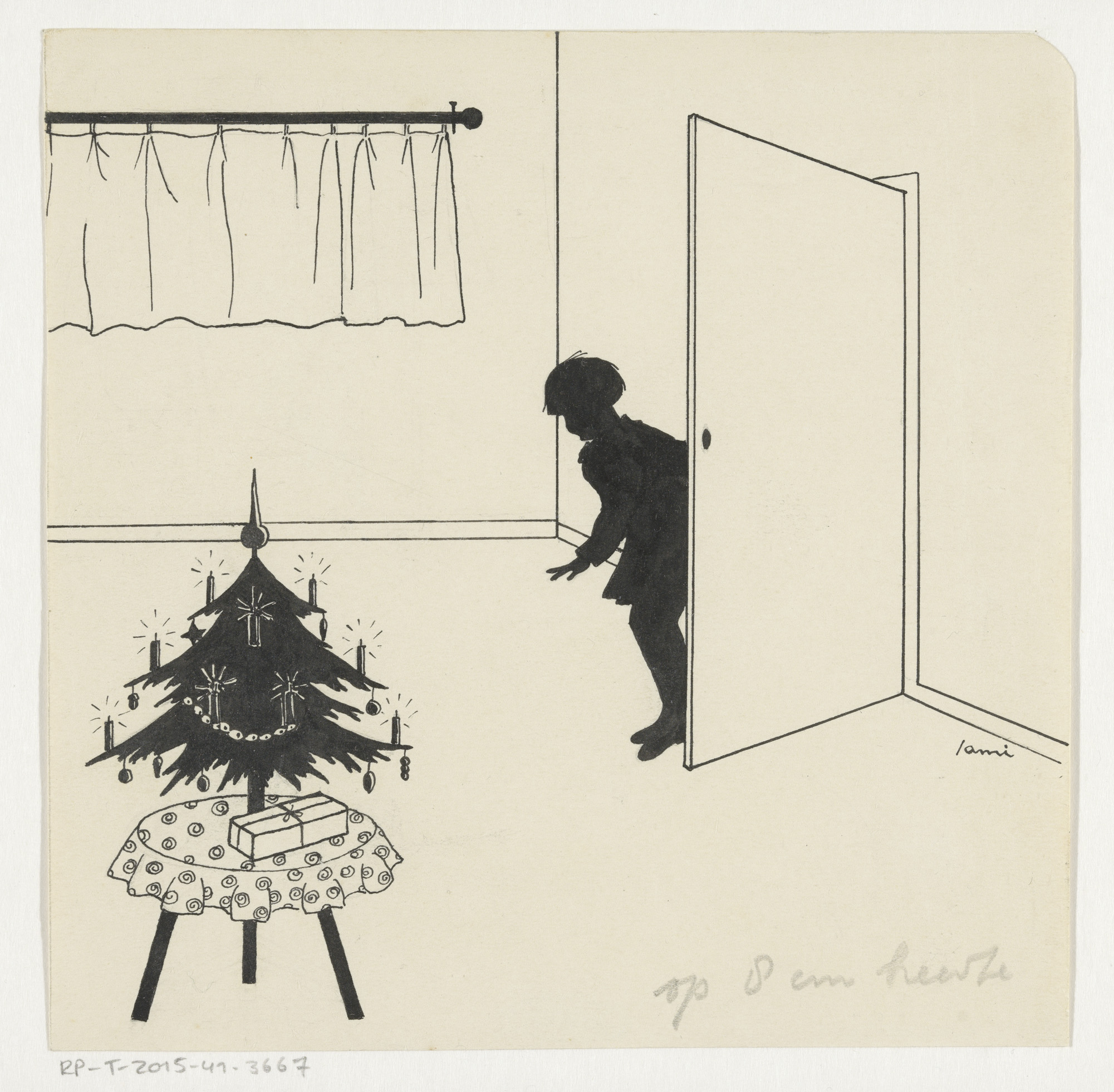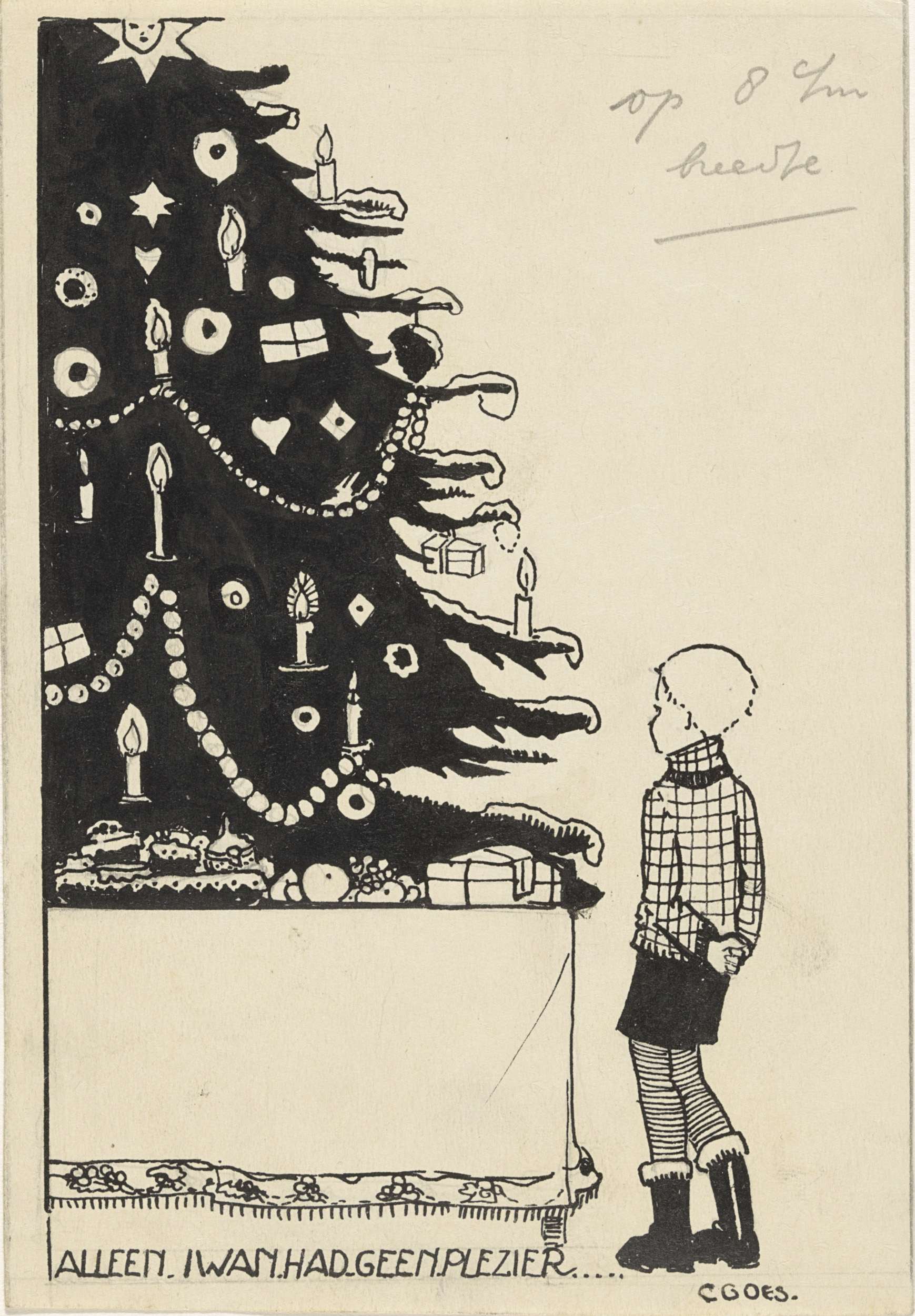 Iwan bij een kerstboom