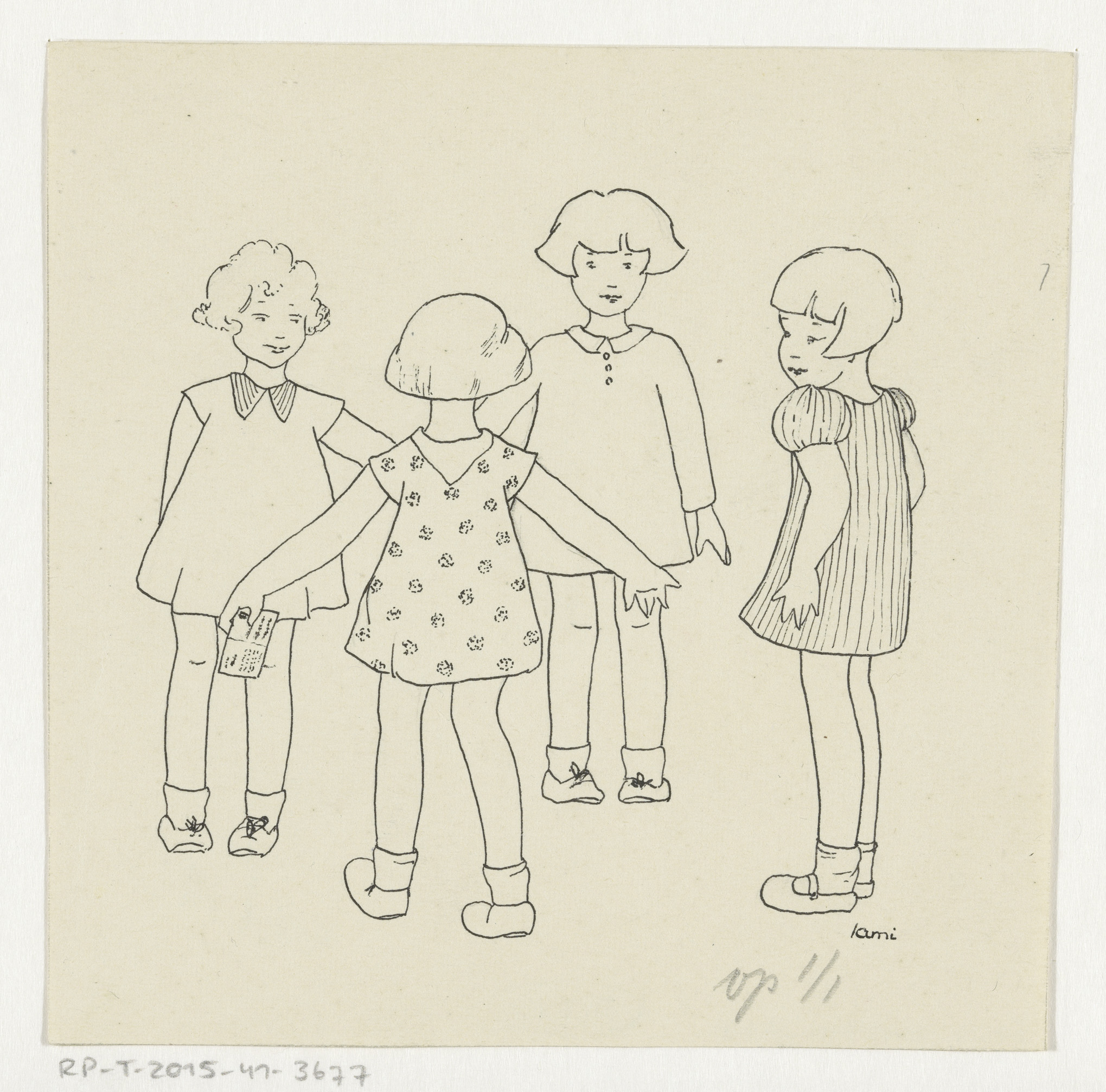 Vier meisjes in jurken