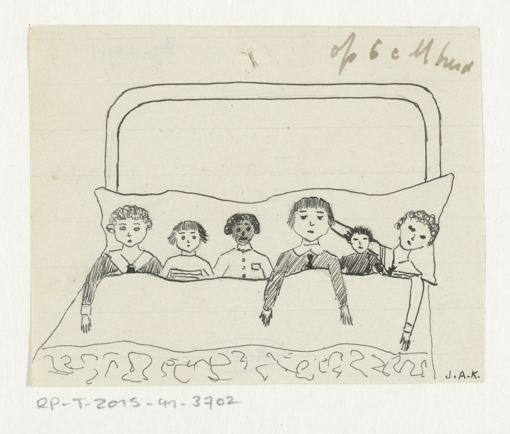 Zes poppen in bed