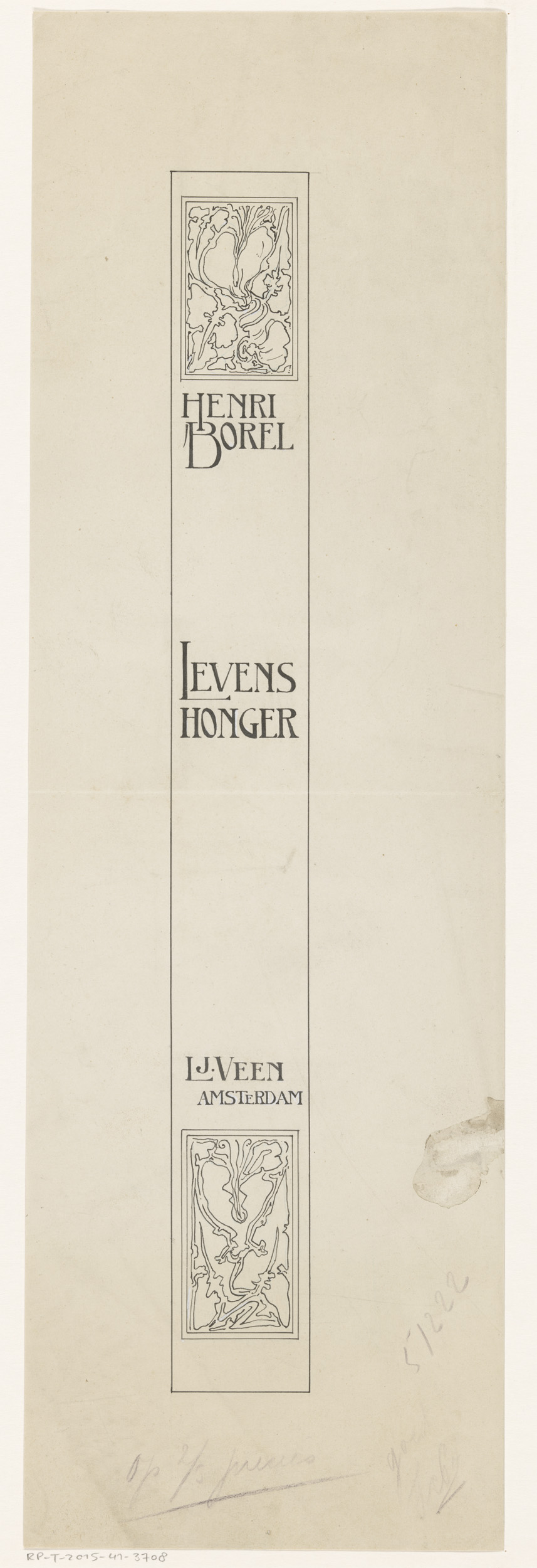 Ontwerp voor een boekrug voor: Henri Borel, Levensho...