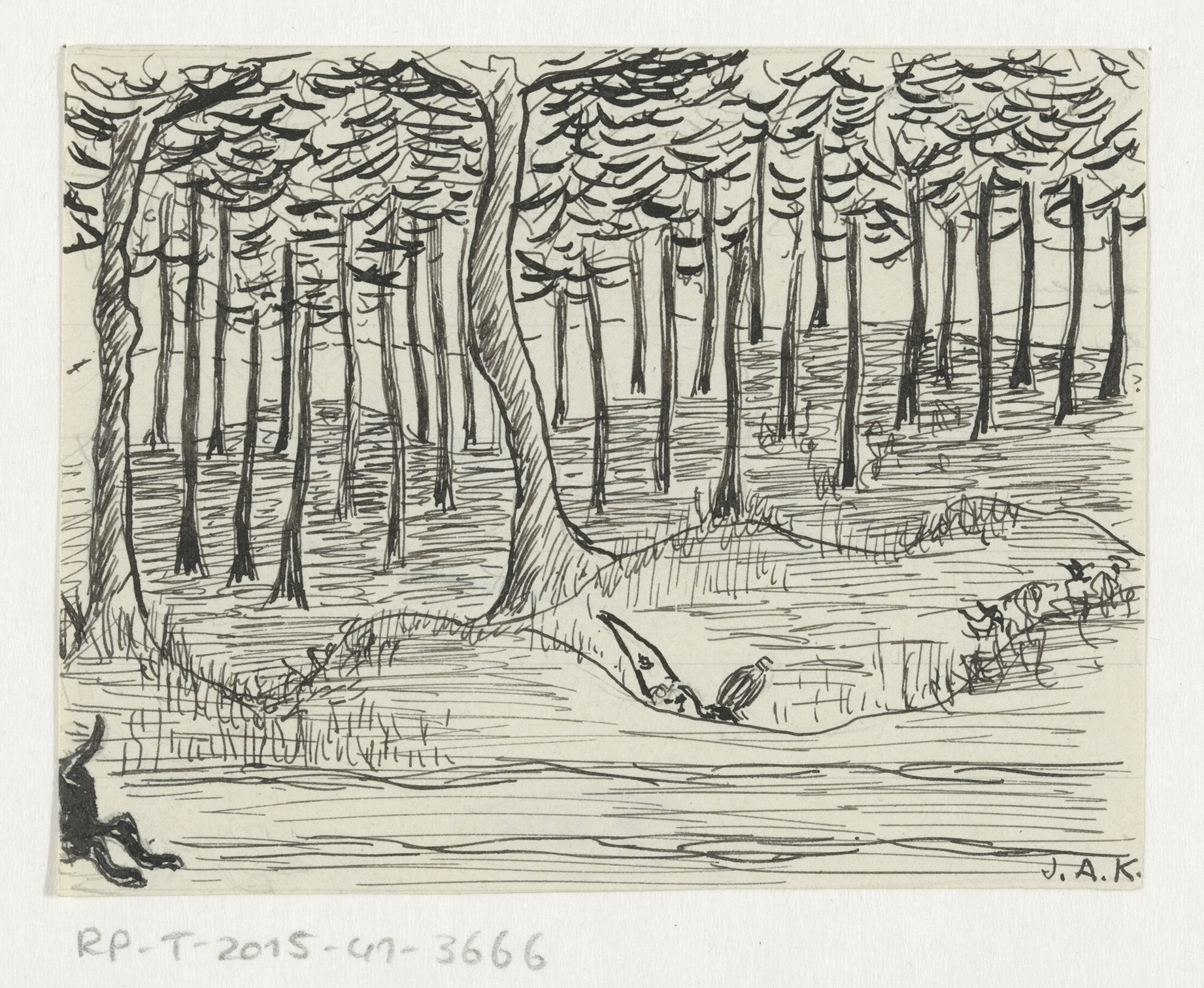 Pop in een kuil in een bos
