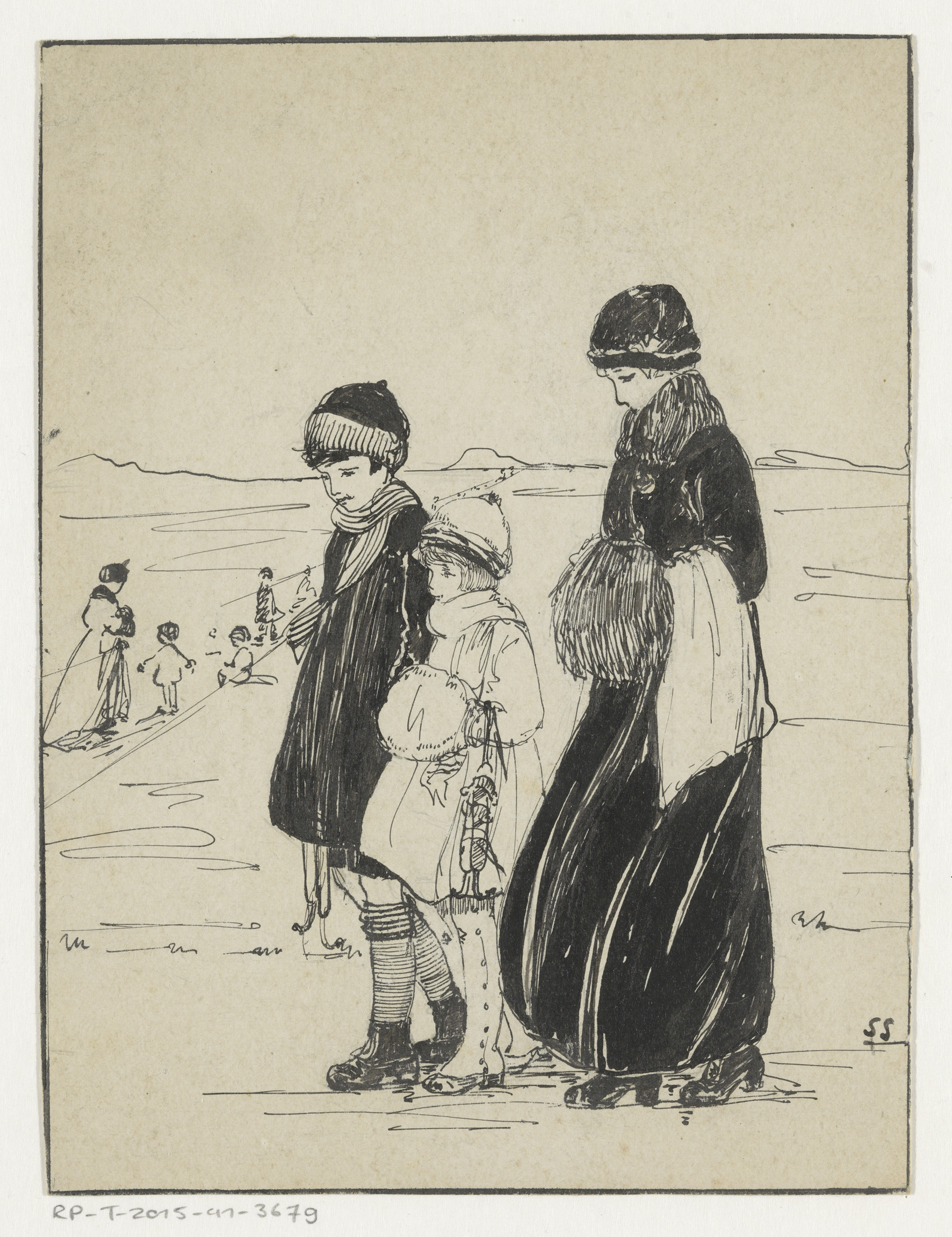 Vrouw en meisjes bij een schaatsbaan
