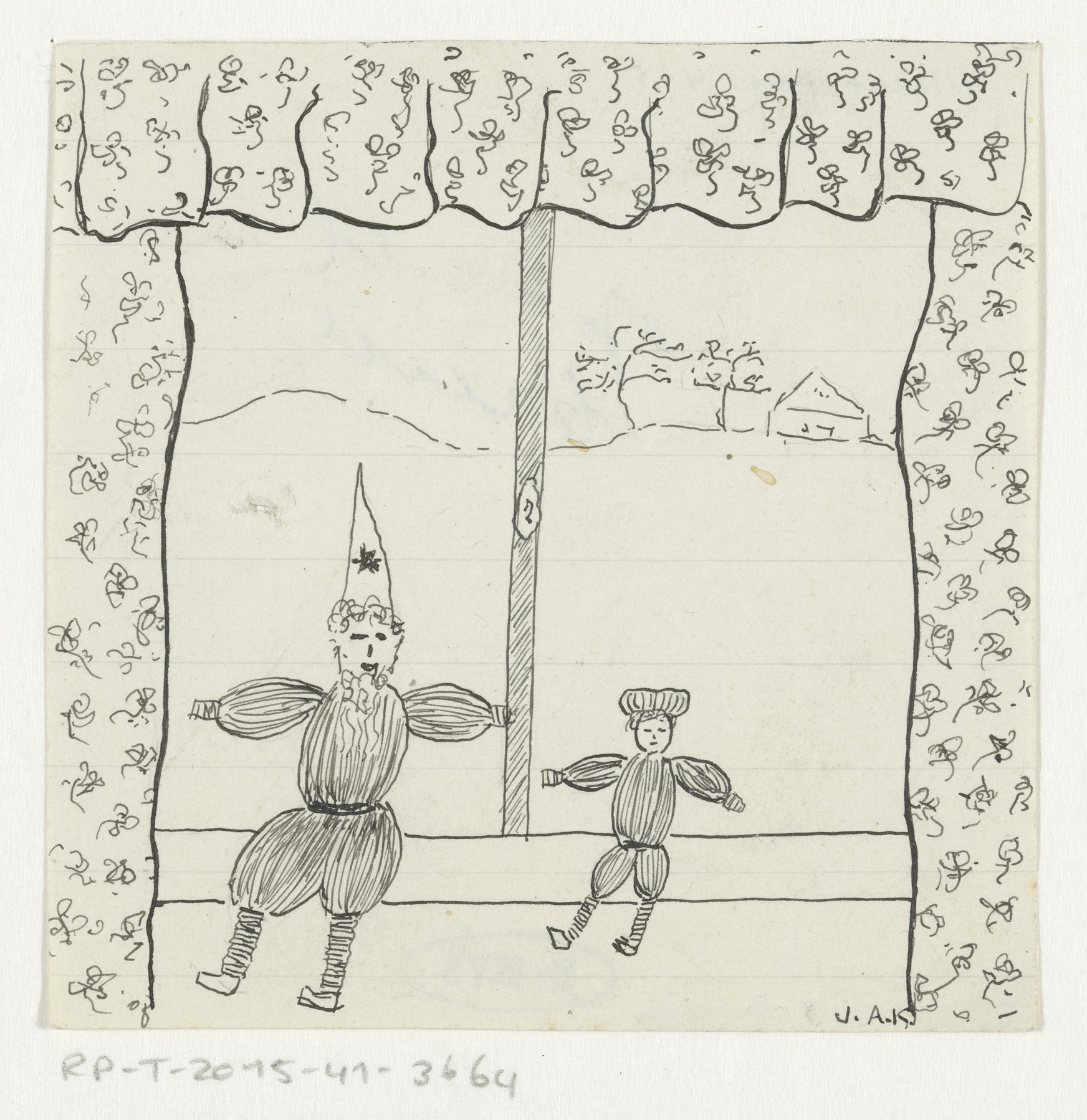 Twee poppen in een vensterbank