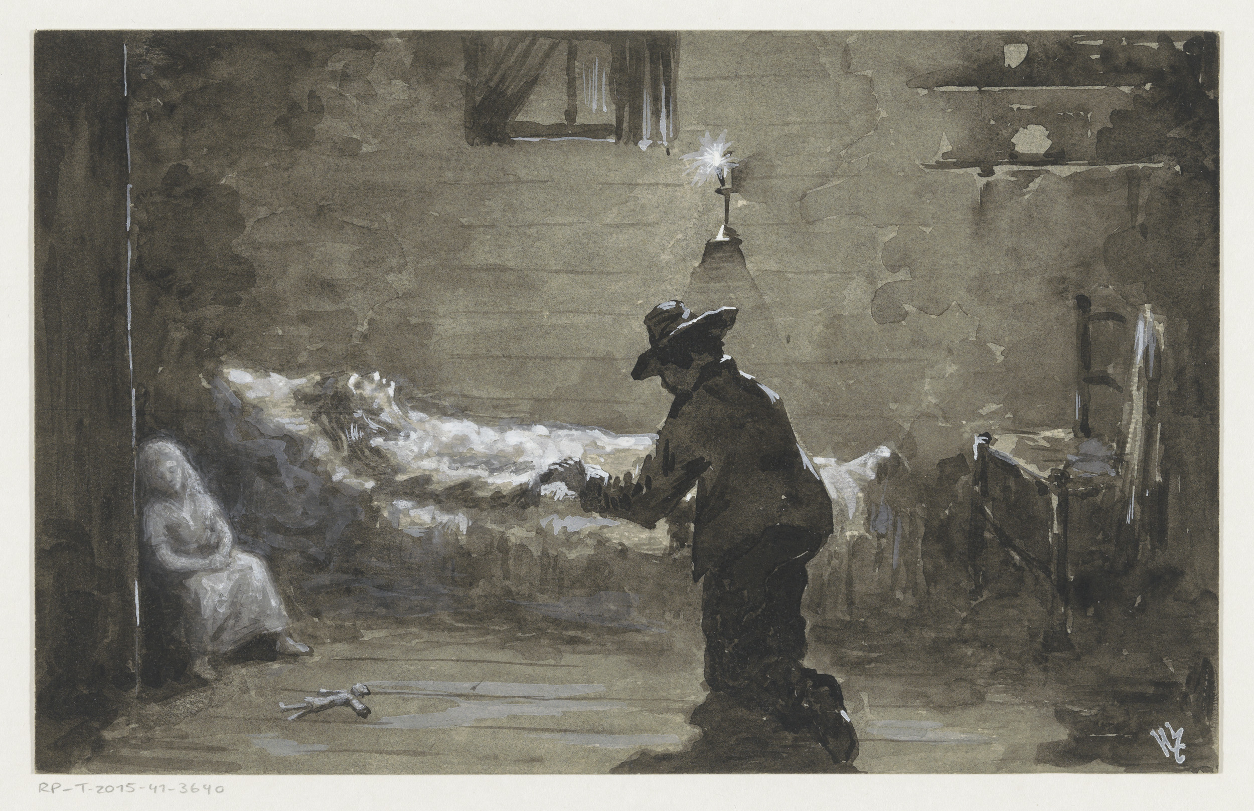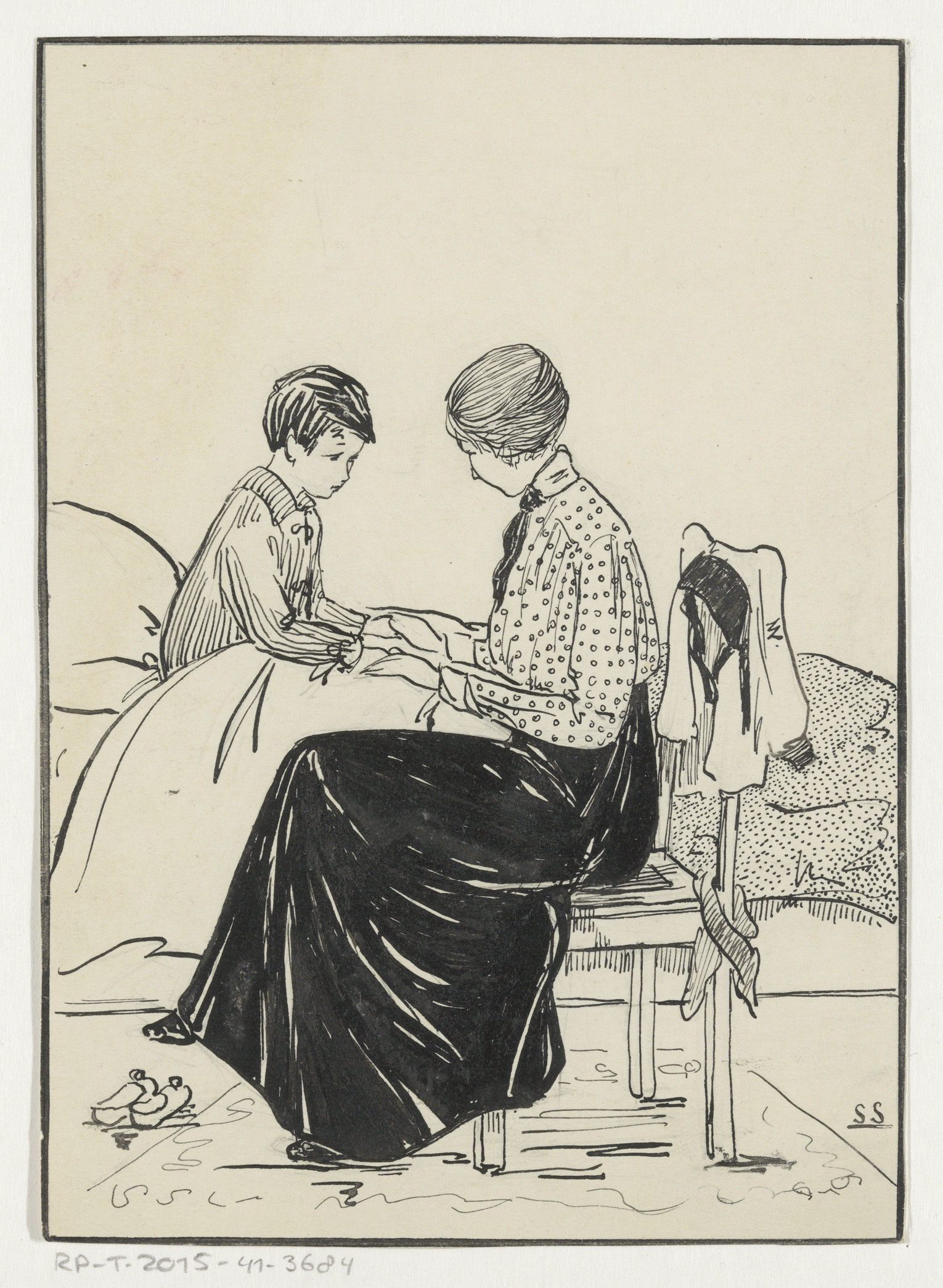 Vrouw aan het bed van een jongen